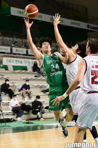 [점프볼=원주/박상혁 기자] 13일 원주종합체육관에서 열린 2020-2021 현대모비스 프로농구 원주 DB와 고양 오리온의 경기, DB 두경민이 레이업슛을 시도하고 있다.