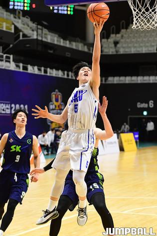 [점프볼=수원/박상혁 기자] 27일 서수원칠보체육관에서 열린 2021 KUSF 대학농구 U리그 단국대와 성균관대의 경기, 성균관대 조은후가 골밑에서 슛을 시도하고 있다.