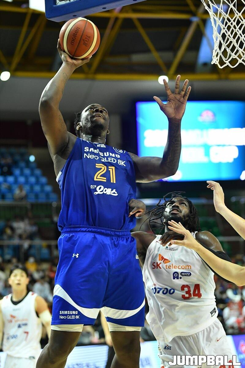 8일 군산월명체육관에서 열린 2023 MG새마을금고 KBL 컵대회 SK와 삼성의 예선 경기, 삼성  코비 코넌이 골밑 공격을 성공하고 있다. [점프볼=군산/유용우 기자]