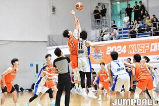 [점프볼=장충/문복주 기자] 5일 동국대 체육관에서 열린 2024 KUSF 대학농구 U-리그 동국대와 한양대의 경기, 동국대 임정현이 골밑 사이드로 파고들어 득점을 노리고 있다.