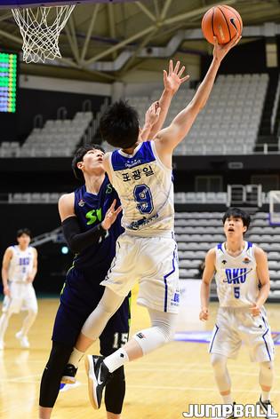 [점프볼=수원/박상혁 기자] 27일 서수원칠보체육관에서 열린 2021 KUSF 대학농구 U리그 단국대와 성균관대의 경기, 성균관대 조은후가 레이업슛을 시도하고 있다.
