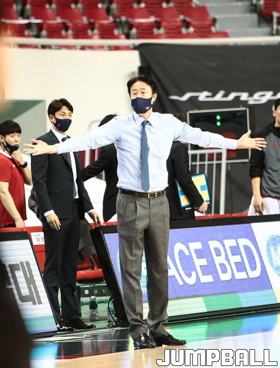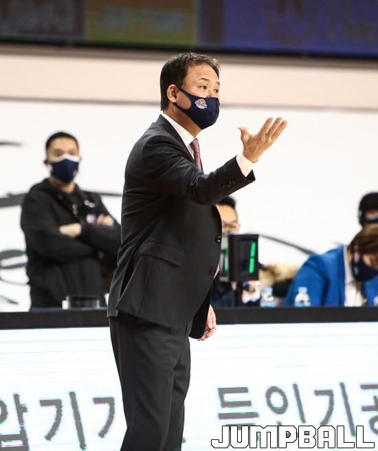 [웜업터뷰] 4강 PO 1차전 나서는 조상현 감독, 4R 대승 복장 그대로