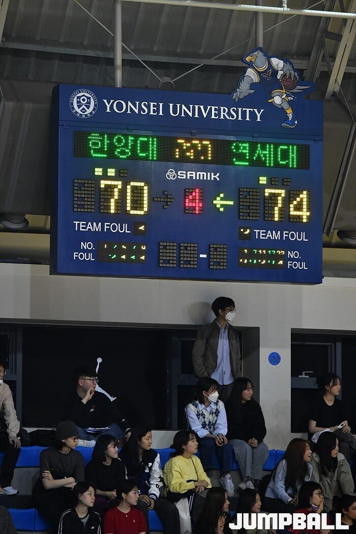 26일 연세대 신촌캠퍼스체육관에서 열린 2023 KUSF 대학농구 U-리그 연세대와 한양대의 경기, 연세대가 84-79로 한양대에 승리하며 7연승을 이어갔다. [점프볼=신촌/유용우 기자]