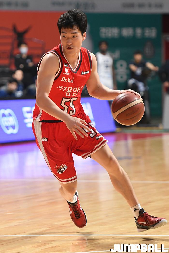 [점프볼=고양/박상혁 기자] 21일 고양실내체육관에서 열린 2020-2021 현대모비스 프로농구 고양 오리온과 전주 KCC의 경기, 오리온 김진유가 돌파를 시도하고 있다.