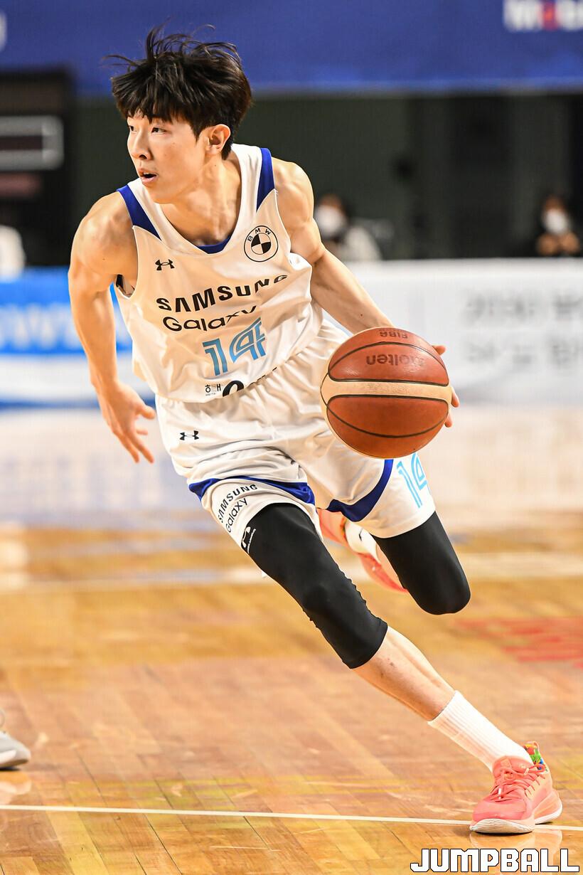 7일 대구체육관에서 열린 2022-2023 SKT 에이닷 프로농구 대구 한국가스공사와 서울 삼성의 경기, 삼성 김진영이 속공을 시도하고 있다.