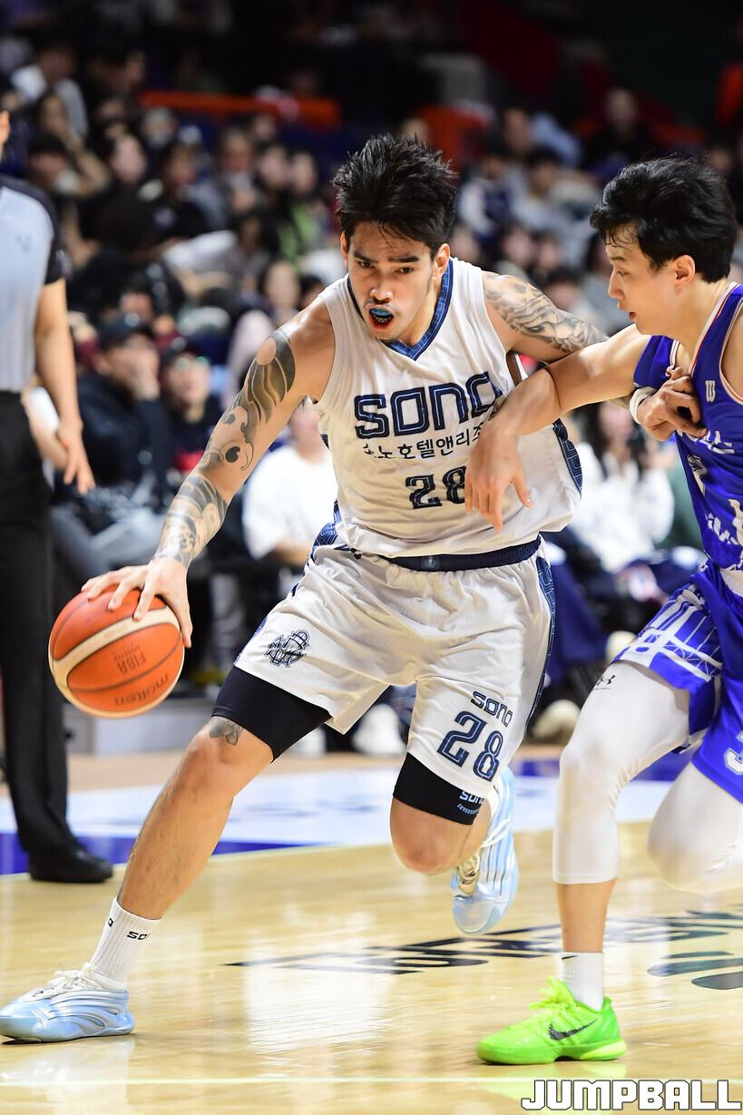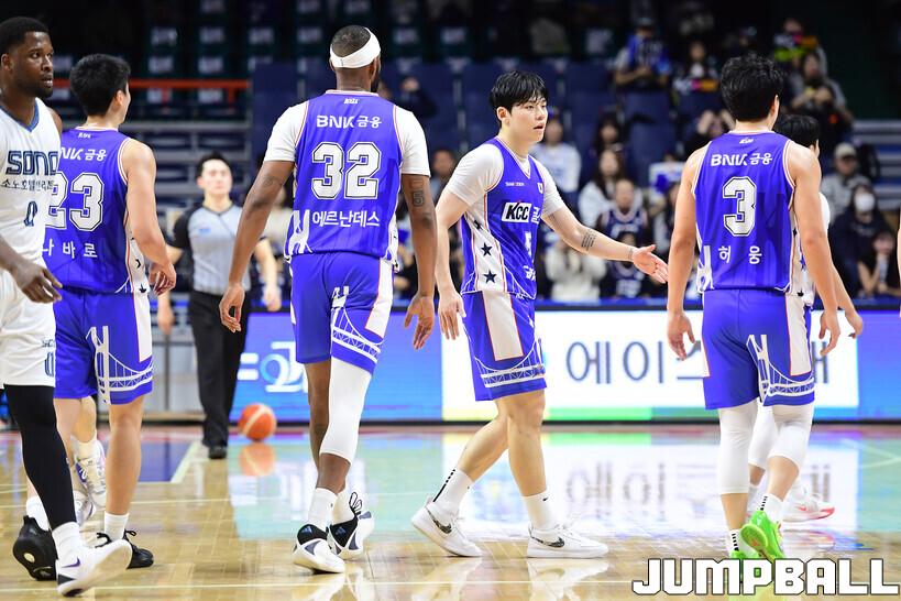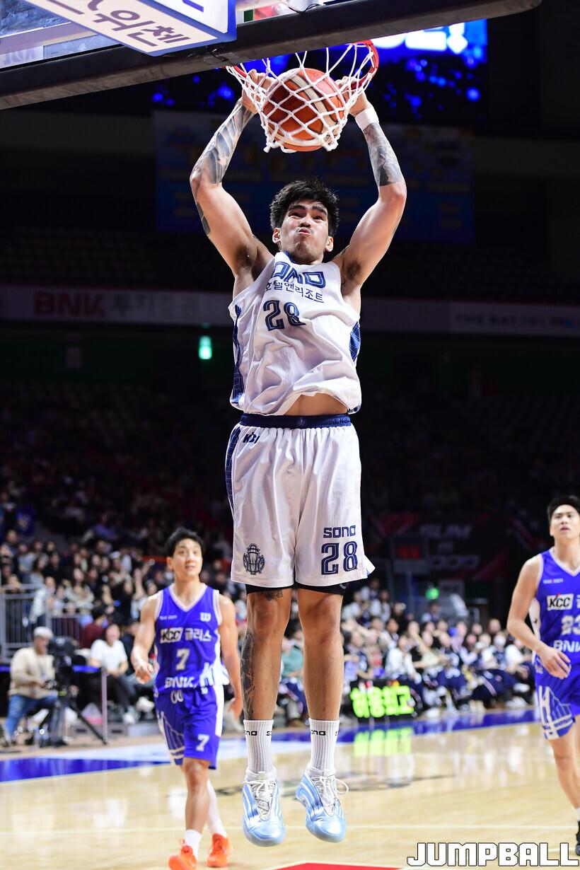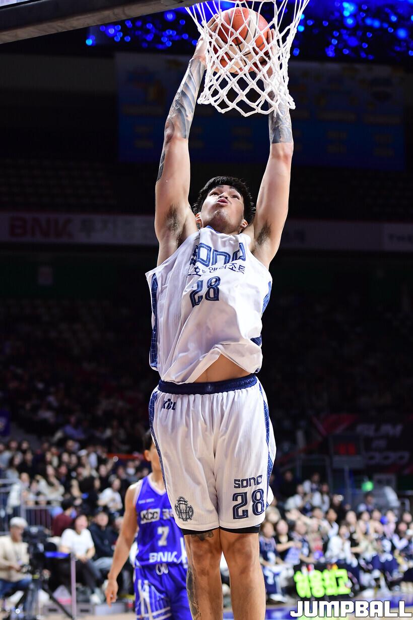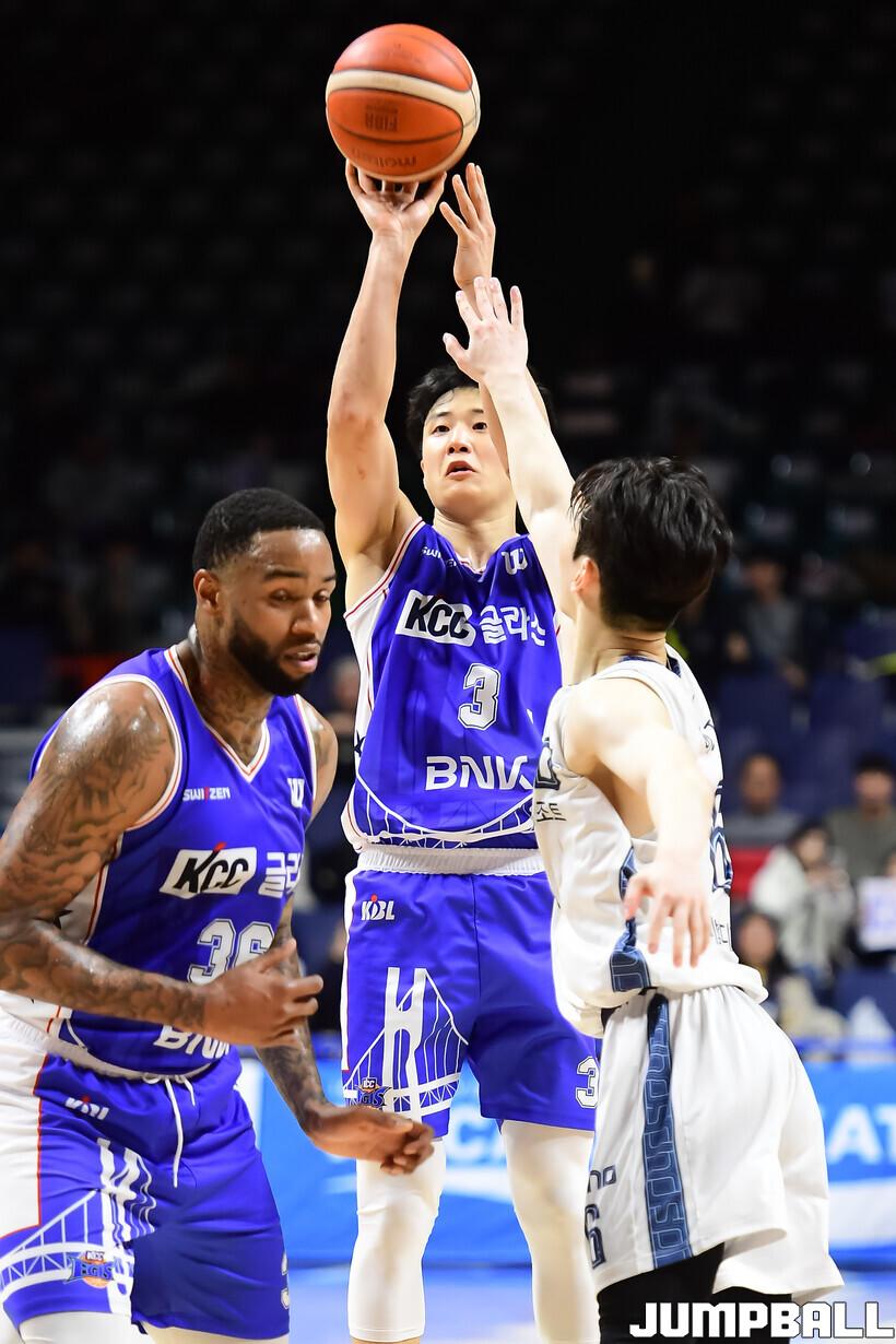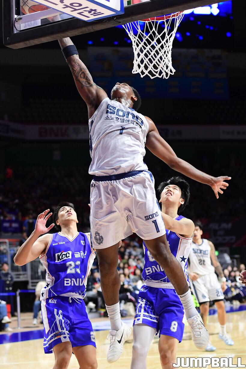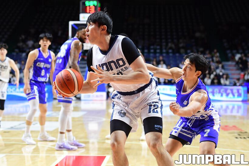 [점프볼=부산/박상혁 기자] 20일 부산사직체육관에서 열린 2025-2026 LG전자 프로농구 부산 KCC와 고양 소노의 경기, KCC가 허훈의 개인 통산 첫 트리플더블과 허웅의 18득점, 윌리엄 나바로와 김동현이 각각 16점과 11점을 올리며 이정현과 켐바오가 각각 20점과 15점으로 활약한 소노에 108-81로 승리하며 5연승을 질주했다.