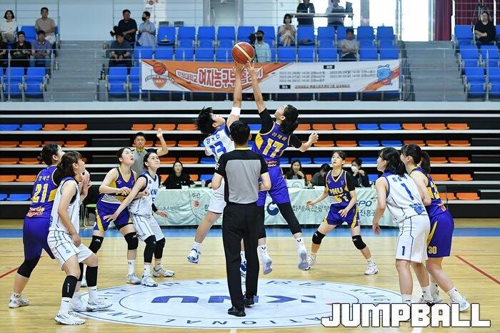 2일 강원대 백령스포츠센터에서 열린 2023 KUSF 대학농구 U-리그 강원대와 부산대의 경기가 점프볼로 시작되고 있다. [점프볼=춘천/유용우 기자]