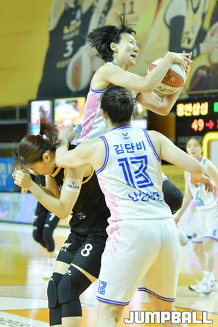 [점프볼=청주/유용우 기자] 24일 청주체육관에서 열린 'KB국민은행 Liiv M 2020-2021 여자프로농구' KB와 삼성생명의 경기, KB 이윤미가 마스크를 쓰고 경기에 임하고 있다.