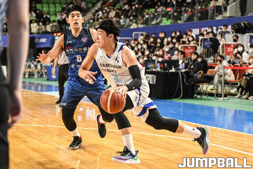 7일 대구체육관에서 열린 2022-2023 SKT 에이닷 프로농구 대구 한국가스공사와 서울 삼성의 경기, 삼성 이정현이 돌파를 시도하고 있다.