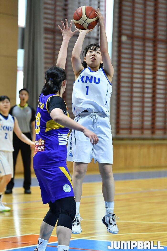 2일 강원대 백령스포츠센터에서 열린 2023 KUSF 대학농구 U-리그 강원대와 부산대의 경기, 강원대 최승기가 슛을 던지고 있다. [점프볼=춘천/유용우 기자]