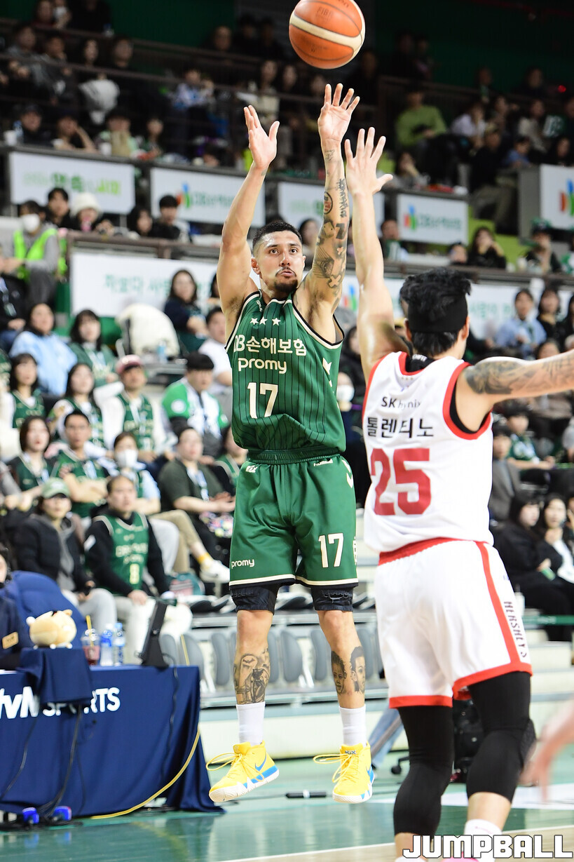 [점프볼=원주/박상혁 기자] 8일 원주 DB 프로미 아레나에서 열린 2025-2026 LG전자 프로농구 원주 DB와 서울 SK의 경기, DB 이선 알바노가 3점슛을 시도하고 있다.