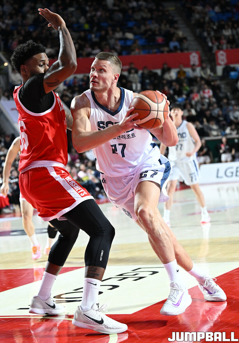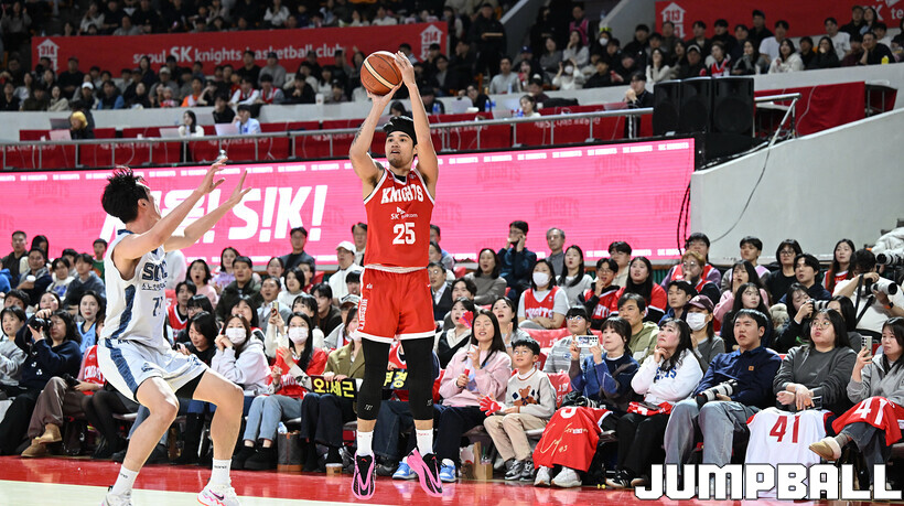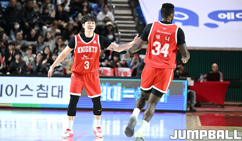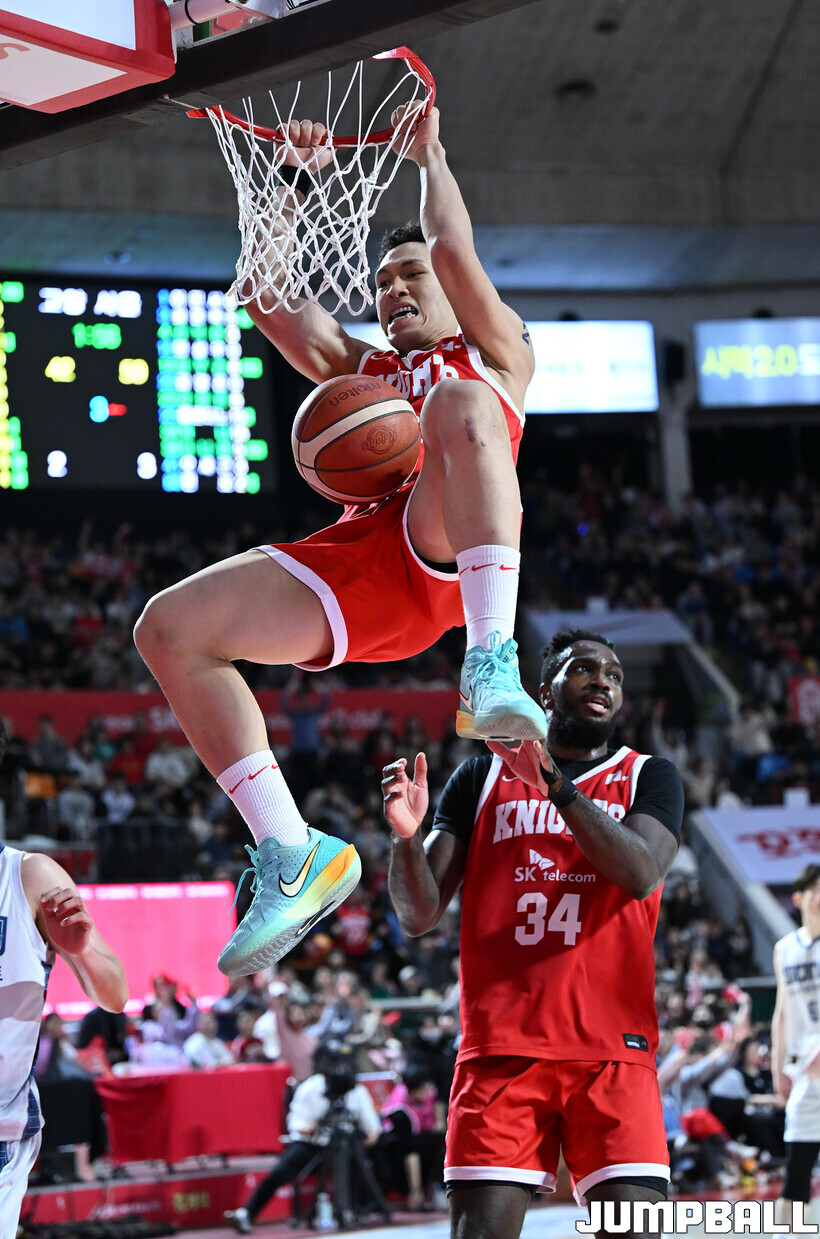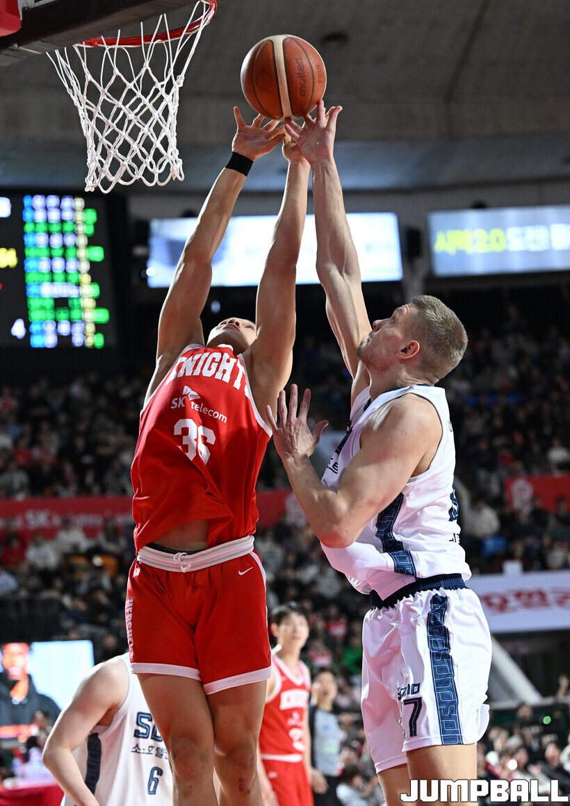 [점프볼=잠실학생/문복주 기자] 서울 SK는 31일 잠실학생체육관에서 열린 2025-2026 LG전자 프로농구 정규시즌 고양 소노와 홈경기에서 79-59로 이겼다. SK의 자밀 워니(21점 9리바운드 3어시스트)가 팀 공격을 이끈 가운데 알빈 톨렌티노(15점 3리바운드), 에디 다니엘(10점 6리바운드 2스틸), 최원혁(5점 4리바운드 4어시스트) 등이 팀 승리를 이끌었다.