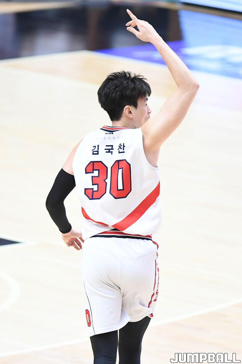 김국찬은 “제가 느끼기에는 슛을 쏘러 나오거나 찾으러 가는 움직임은 제일 좋다. 우리 팀에 공격력이 좋은 선수들이 많으니까 저만 공격을 할 수 있는 게 아니라서 그렇게 생각할 수도 있다”며 “저는 그에 대한 스트레스를 받지 않는다. 제가 맡은 역할이 있기 때문에 그 역할을 충실히 이행하려고 한다”고 했다.