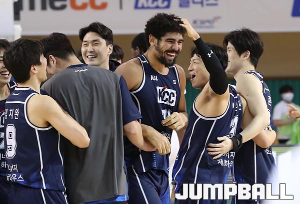 [점프볼=군산/백승철 기자] 10일 오후 군산 월명체육관에서 열린 2020-2021 현대모비스 프로농구 전주 KCC와 인천 전자랜드의 경기 종료 후 KCC 데이비스가 동료들과 승리의 기쁨을 나누고 있다.