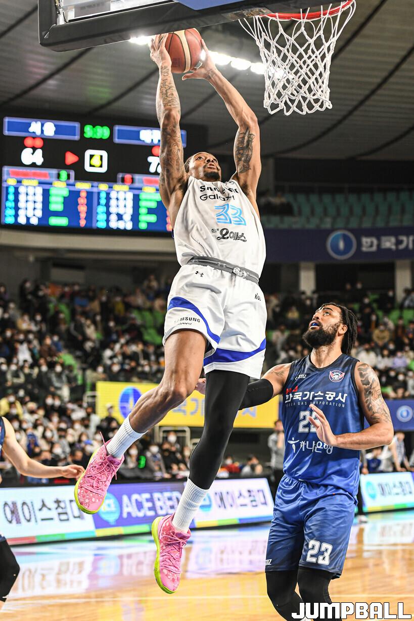 7일 대구체육관에서 열린 2022-2023 SKT 에이닷 프로농구 대구 한국가스공사와 서울 삼성의 경기, 한국가스공사가 홈에서 삼성에 83-77로 승리했다. 한국가스공사와 삼성 경기 화보.