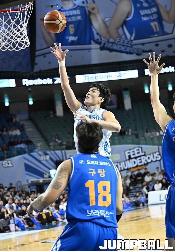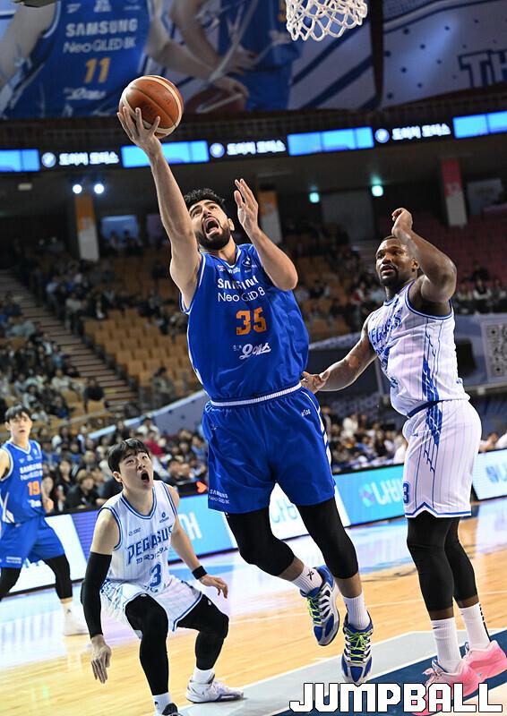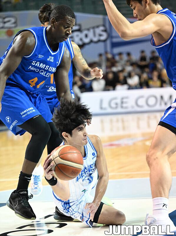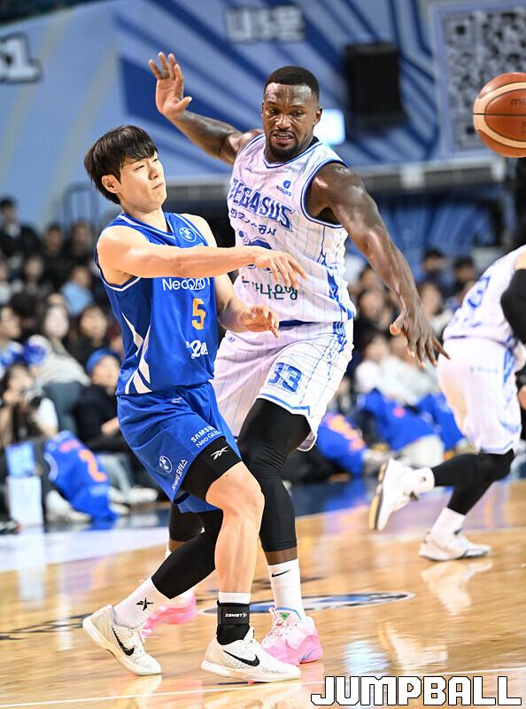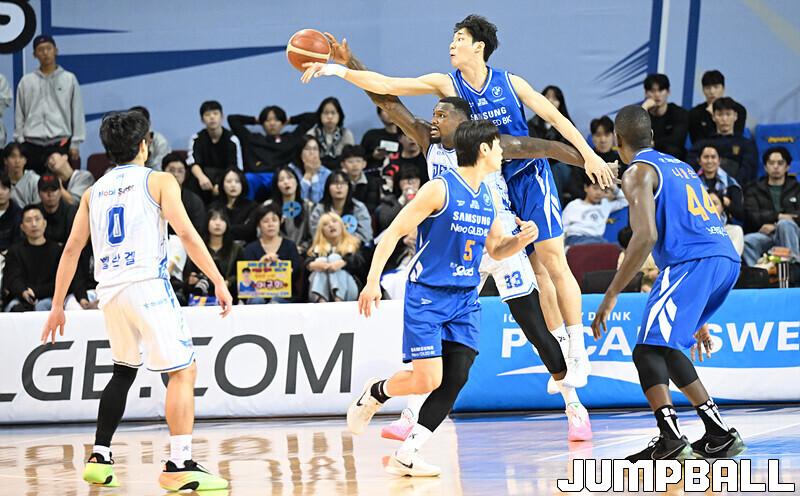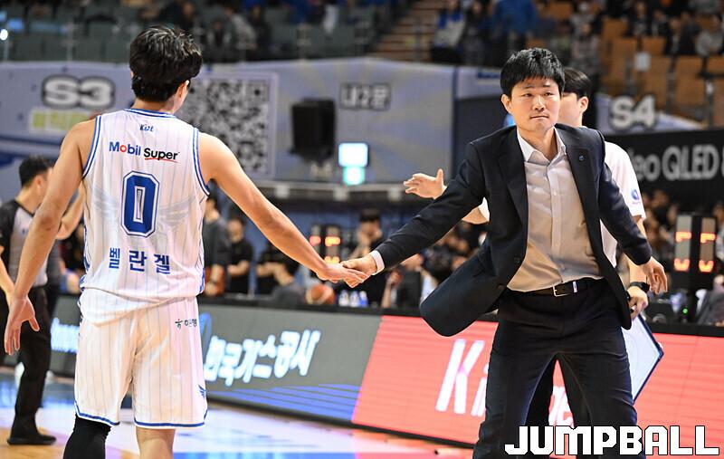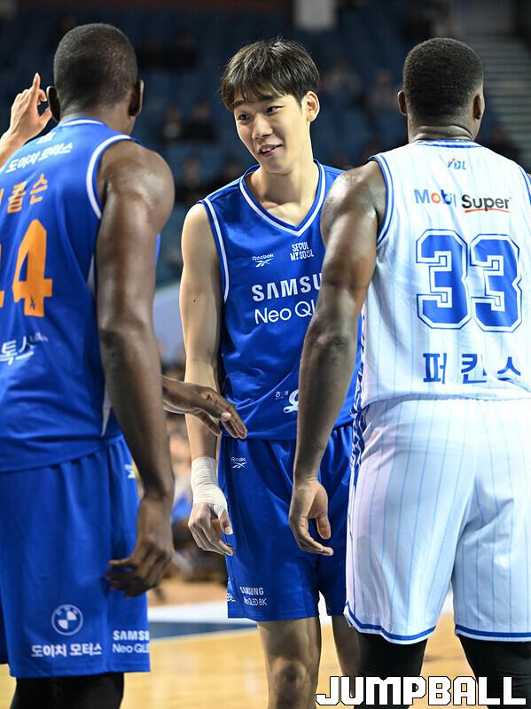 [점프볼=잠실/문복주 기자] 대구 한국가스공사는 8일 잠실체육관에서 열린 2025-2026 LG전자 프로농구 정규시즌 서울 삼성과 2라운드 맞대결에서 85-80으로 이겼다. 한국가스공사의 닉 퍼킨스(32점 14리바운드 3어시스트 2스틸)와 셈조세프 벨란겔(20점 3리바운드 6어시스트)이 존재감을 뽐냈고, 신승민(13점 5리바운드 3어시스트)로 팀 승리에 기여를 했다.
