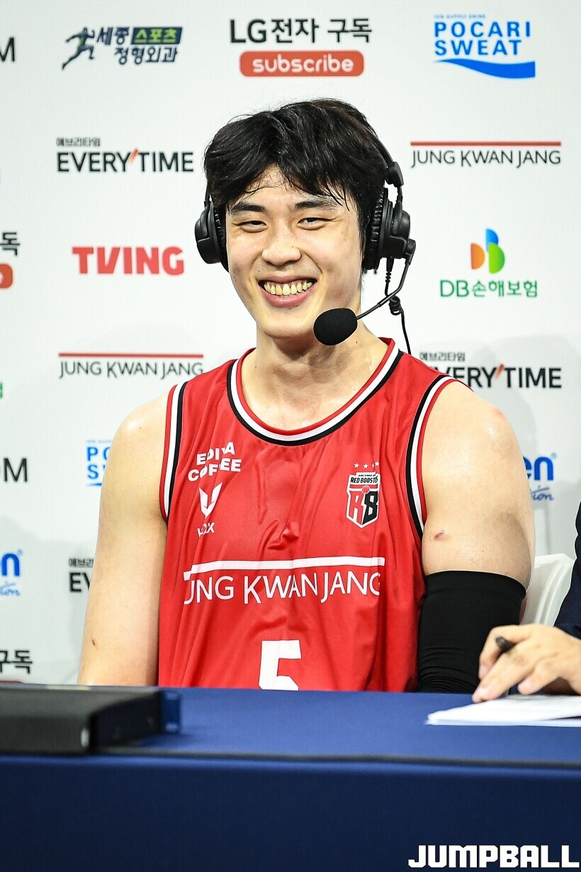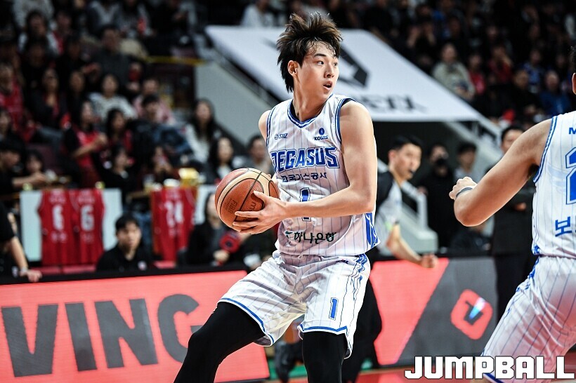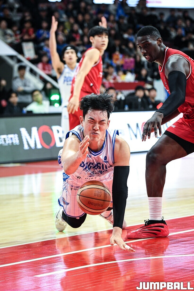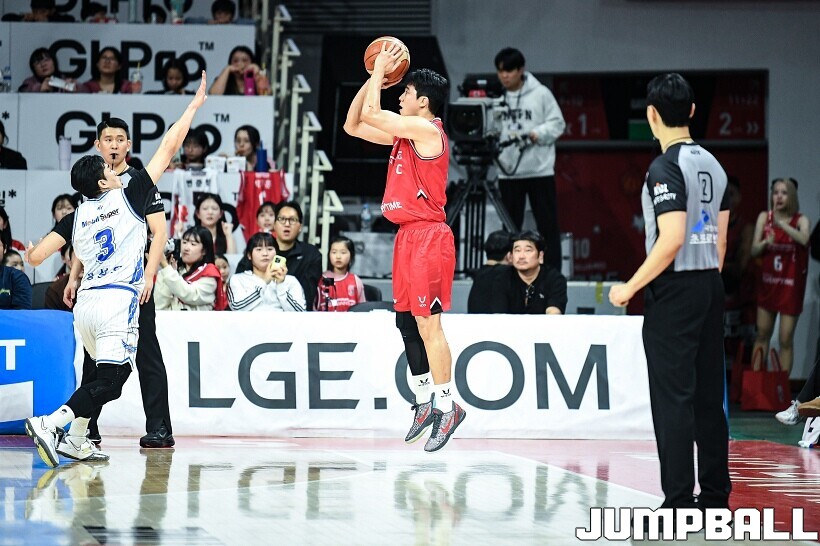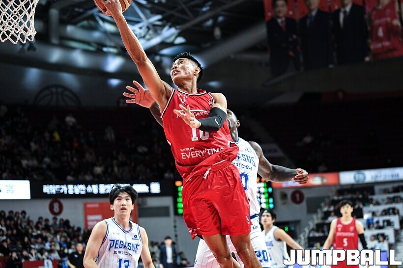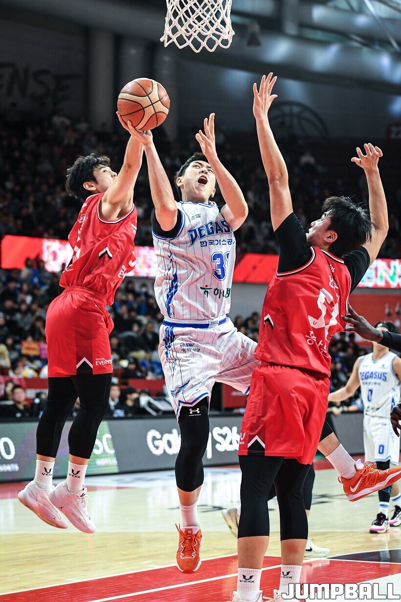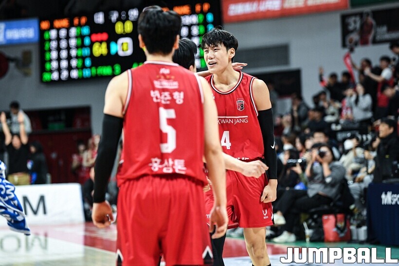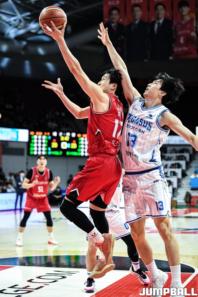 [점프볼=안양/유용우 기자] 7일 안양 정관장 아레나에서 열린 2025-2026 LG전자 프로농구 안양 정관장과 대구 한국가스공사의 경기, 정관장 한승희가 14점 7리바운드 1어시스트를 기록하며 맹활약한 가운데, 정관장이 66-64으로 한국가스공사를 꺾었다. 변준형 12점 2리바운드 6어시스트 2블록, 조니 오브라이언트 9점 5리바운드, 브라이스 워싱턴 9점 2리바운드를 기록하며 팀 승리에 기여했다.