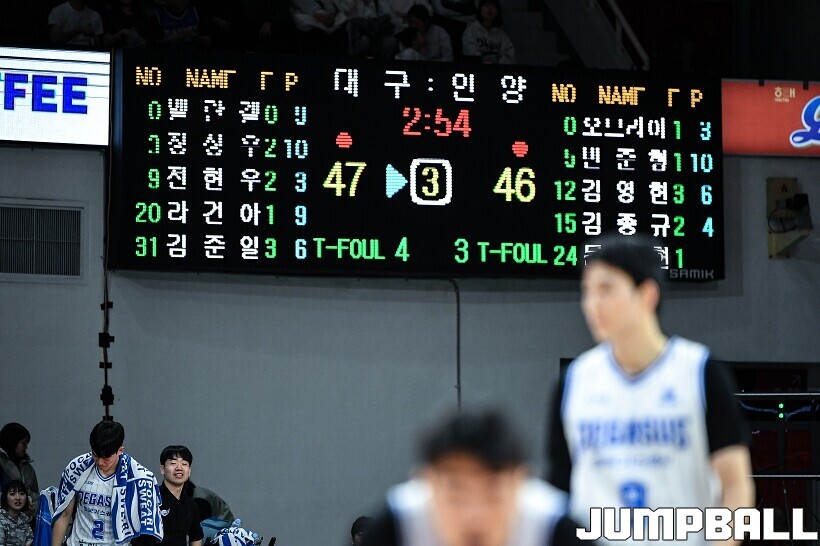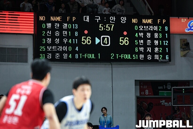 한국가스공사는 샘조세프 벨란겔이 16점 5리바운드 6어시스트, 라건아가 11점 9리바운드 1어시스트 1스틸, 정성우가 11점 1리바운드 4어시스트 1스틸을 기록하며 분전했지만, 마지막 정관장 박정웅에게 득점을 허용하며 패했다.