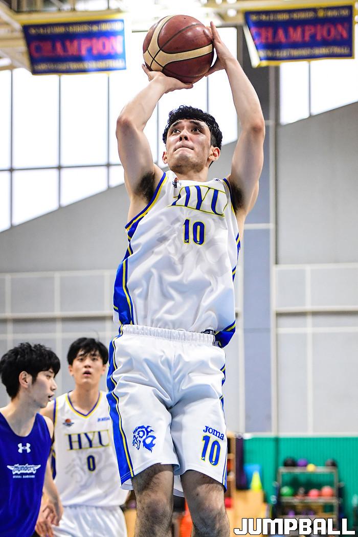[점프볼=용인/박상혁 기자] 28일 용인에 위치한 삼성휴먼센터에서 열린 서울 삼성과 한양대의 연습경기, 한양대 이근휘가 슛을 시도하고 있다.
