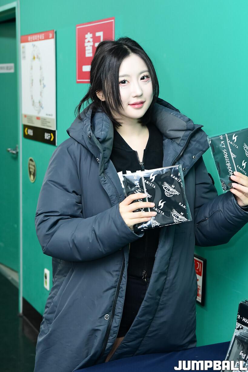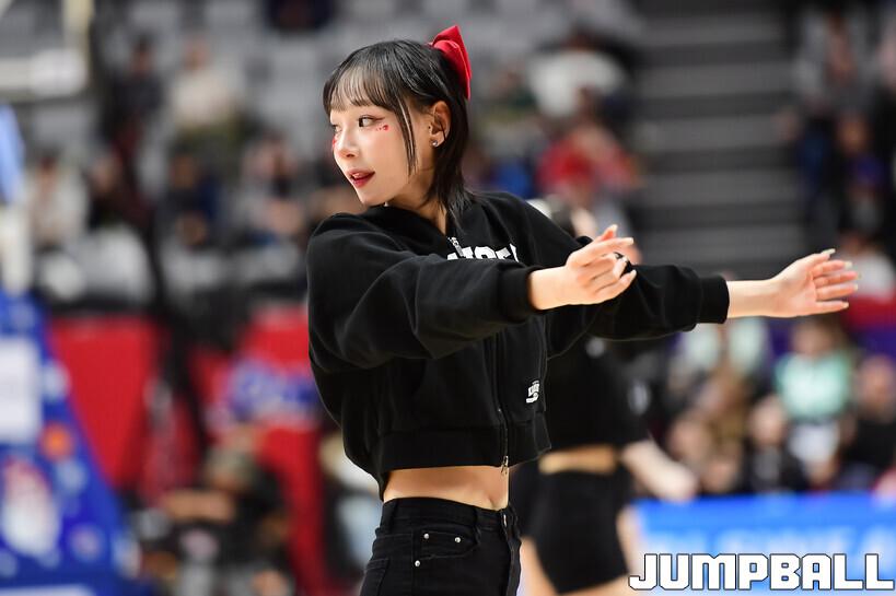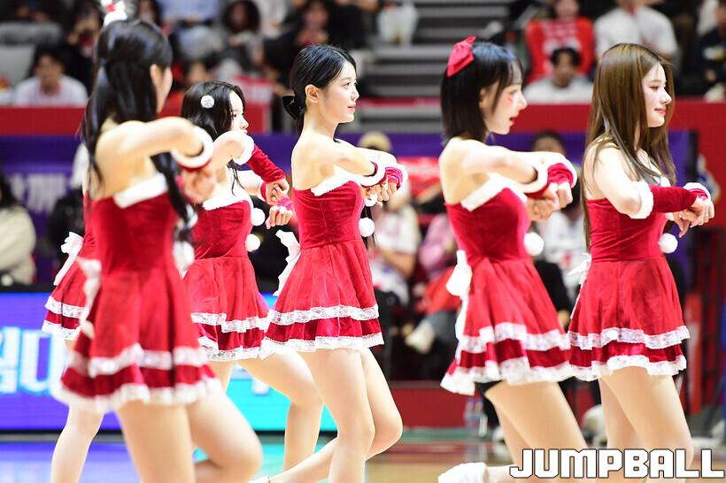 [점프볼=수원/박상혁 기자] 14일 수원 KT 소닉붐 아레나에서 열린 2025-2026 LG전자 프로농구 수원 KT와 서울 SK의 경기, KT 치어리더가 승리를 위해 열띤 응원을 선보였다.