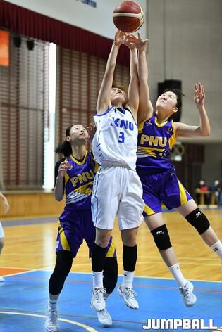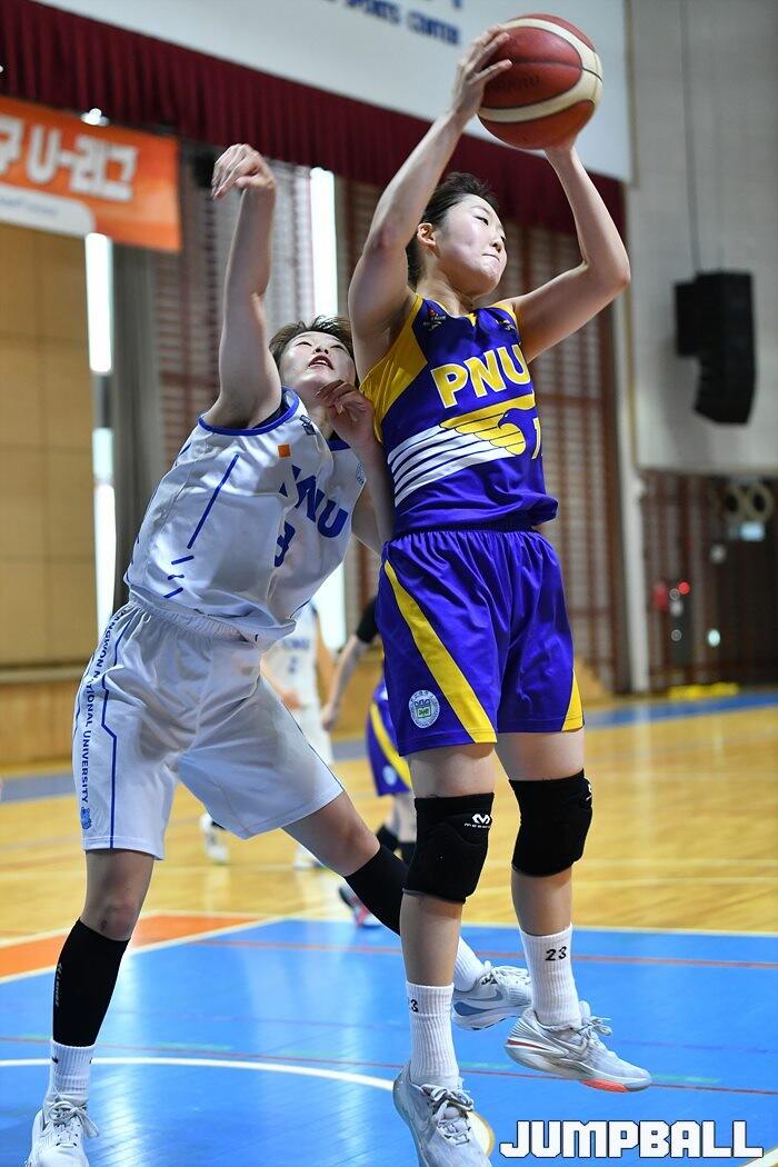 2일 강원대 백령스포츠센터에서 열린 2023 KUSF 대학농구 U-리그 강원대와 부산대의 경기, 부산대 이수하가 리바운드를 잡고 있다. [점프볼=춘천/유용우 기자]