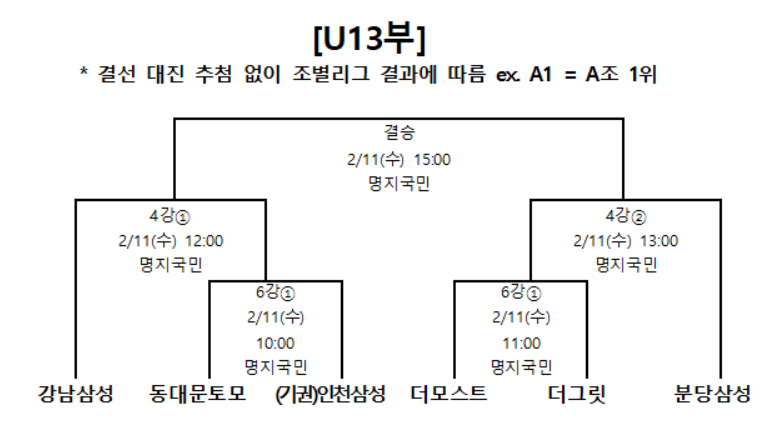 예비 중1들이 펼치는 U13부에선 강남삼성과 동대문토모, 인천삼성, 더 모스트, 더그릿, 분당삼성이 결선에 진출했다.