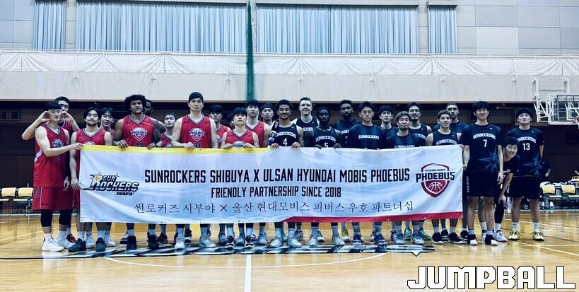 울산 현대모비스는 8일 시부야 연습체육관에서 열린 선로커즈 시부야와 친선경기에서 75-83으로 졌다. 현대모비스는 2018년부터 자매결연을 맺어 일본을 방문할 때 시부야와 연습경기를 갖는다. 이날 친선경기에서는 쿼터가 끝날 때마다 우위가 바뀌는 접전이었다.