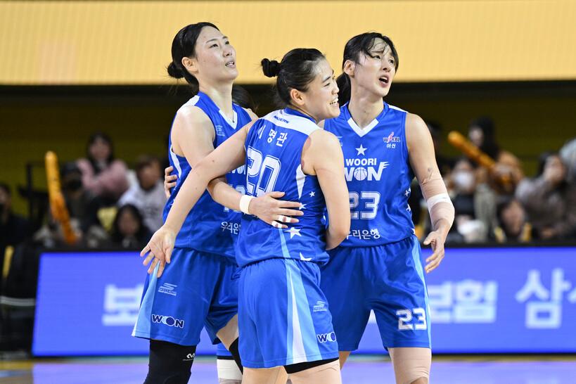 우리은행은 심성영, 스나가와 나츠키, 이명관, 박혜미, 변하정을 선발로 내세웠다. 그러나 에이스의 빈자리는 너무나 컸다. 신한은행에 14점을 내주는 동안 단 1점도 넣지 못하며 0-14로 1쿼터를 끝냈다. 3점슛 10개와 2점슛 6개가 모두 림을 빗나갔다.
