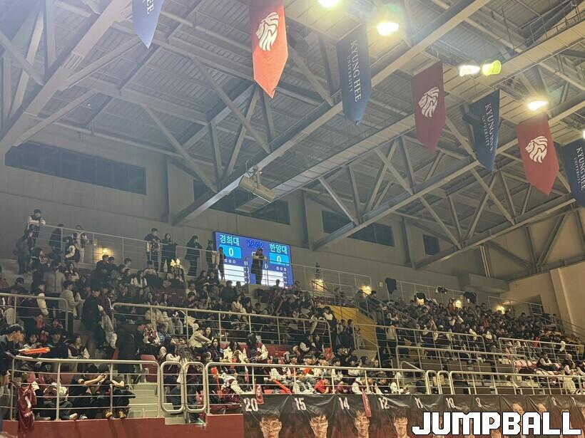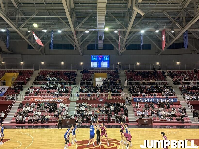 한편, 이날 선승관에는 양교의 많은 동문, 학생들이 관중석에 들어차 뜨거운 열기를 실감케 했다. 경희대에선 최부영 전 농구부장을 비롯해 안준호 전 남자농구대표팀 감독, 김도수, 박진열, 김민수, 이지원 등이 자리해 축제의 장을 빛냈다.