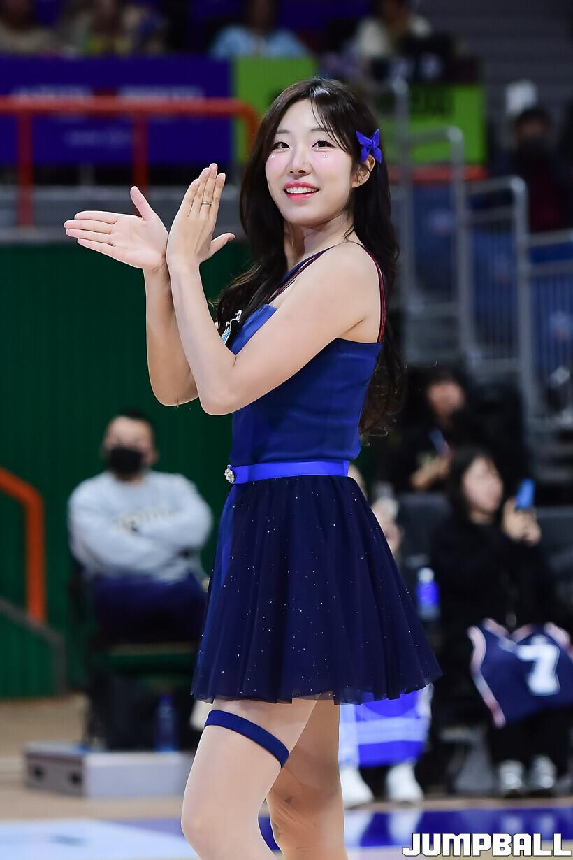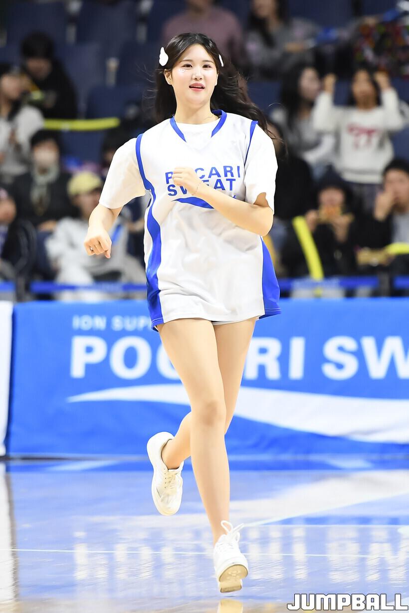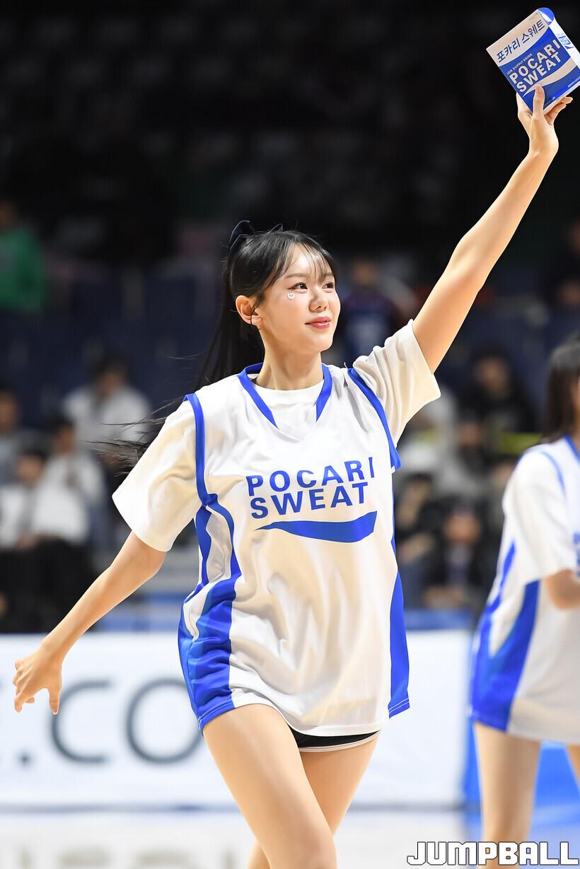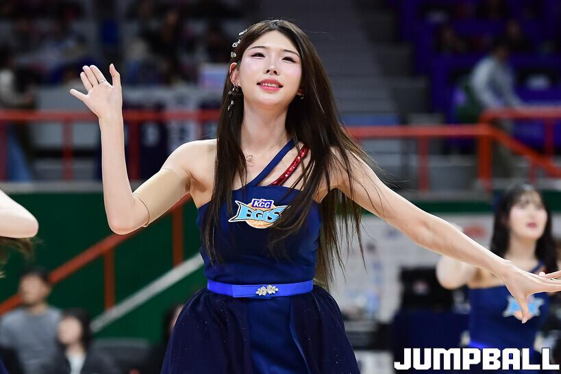 [점프볼=부산/박상혁 기자] 28일 부산사직체육관에서 열린 2025-2026 LG전자 프로농구 부산 KCC와 울산 현대모비스의 경기, KCC 치어리더가 승리를 위해 팬들과 함께 응원을 하고 있다.