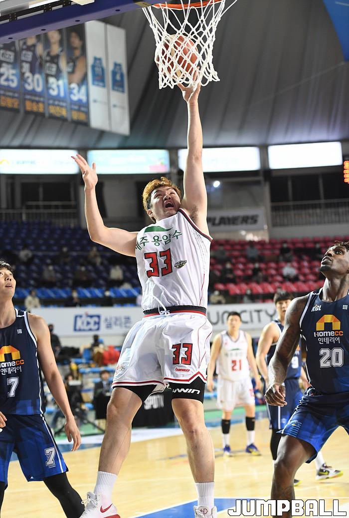 [점프볼=전주/문복주 기자] 30일 전주실내체육관에서 열린 2020-2021 현대모비스 프로농구 전주 KCC와 고양 오리온의 경기, 오리온 이승현이 파이팅 넘치는 골밑 공격으로 득점을 노리고 있다.
