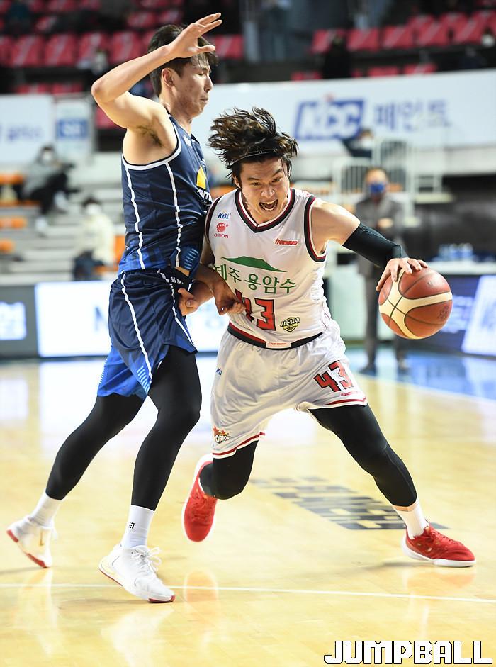 [점프볼=전주/문복주 기자] 30일 전주실내체육관에서 열린 2020-2021 현대모비스 프로농구 전주 KCC와 고양 오리온의 경기, 오리온 이대성이 순간 돌파를 시도하고 있다.