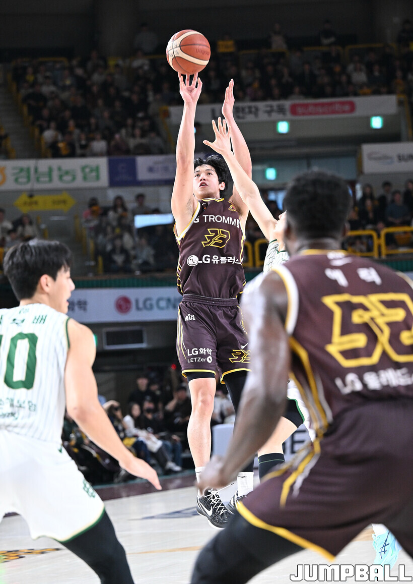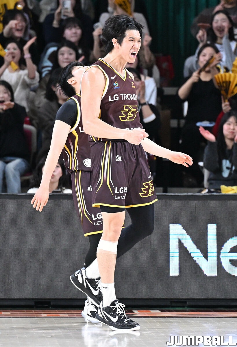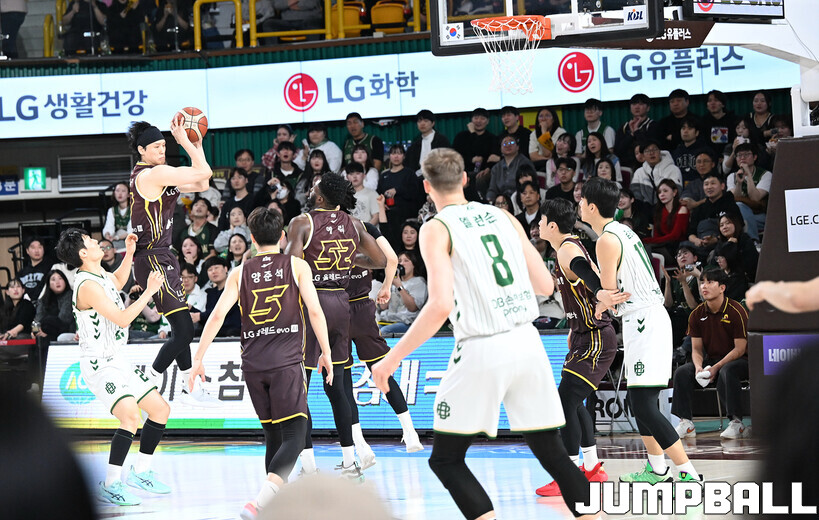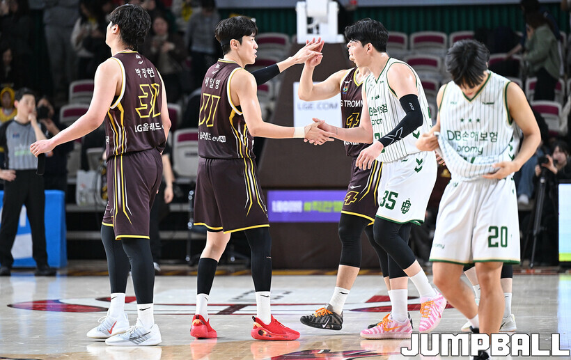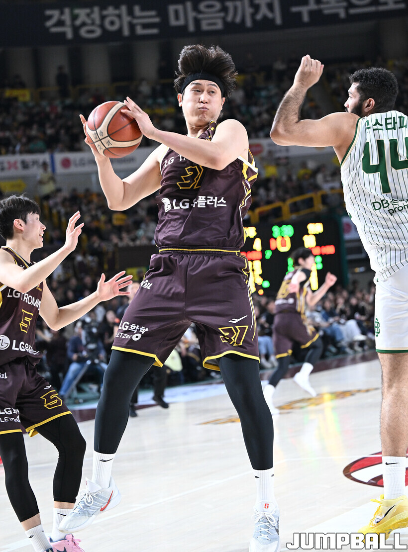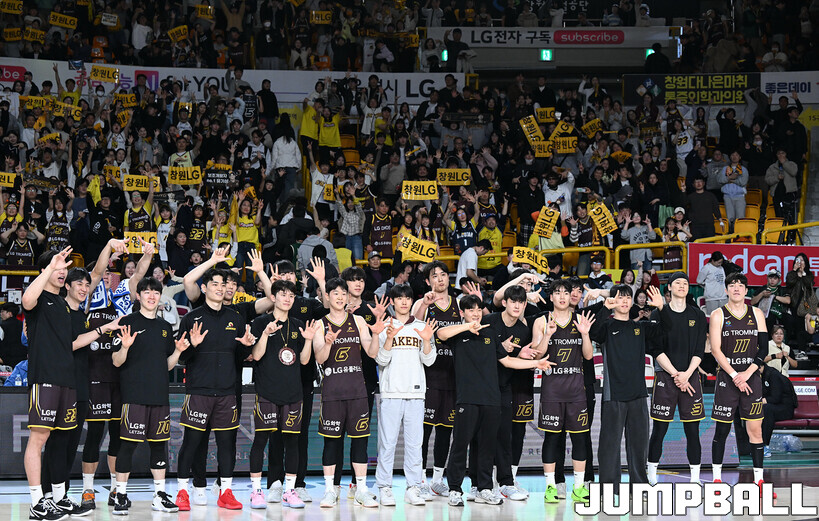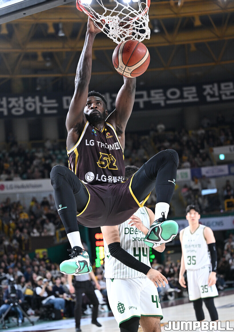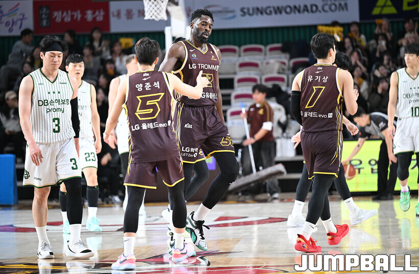 [점프볼=창원/문복주 기자] 창원 LG는 14일 창원체육관에서 열린 2025~2026 LG전자 프로농구 원주 DB와 홈 경기에서 80-58로 이겼다. LG는 마이클 에릭(22점 18리바운드 2어시스트)과 함께 양준석(13점 7리바운드 14어시스트 2스틸), 유기상(14점 3점슛 4개), 칼 타마요(10점 2리바운드 2어시스트)의 활약으로 매진 관중에서 승리를 선물했다.
