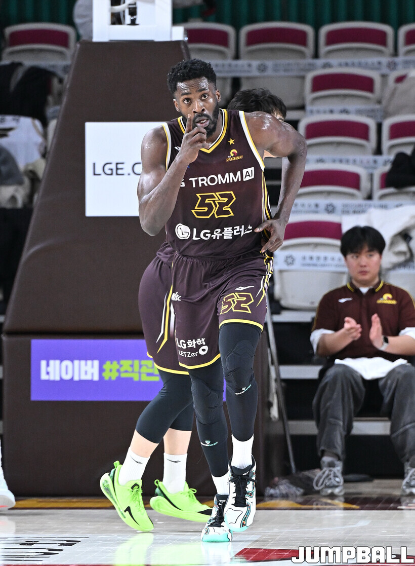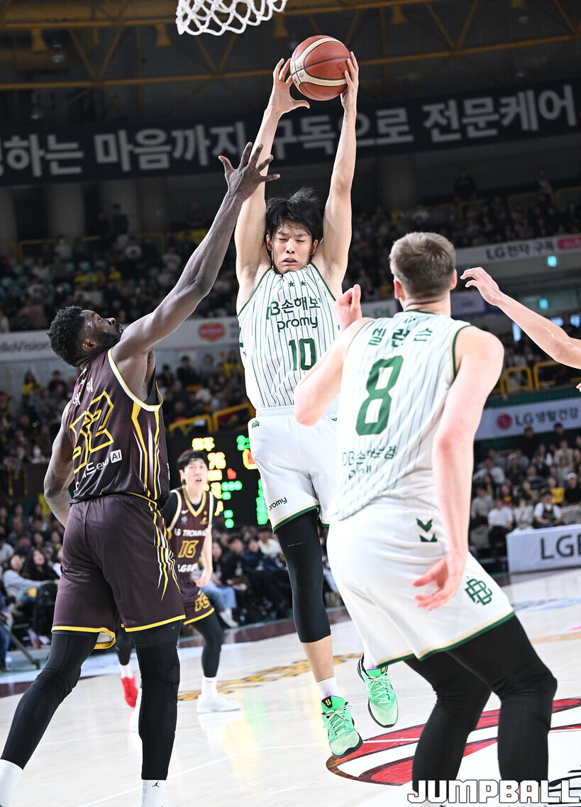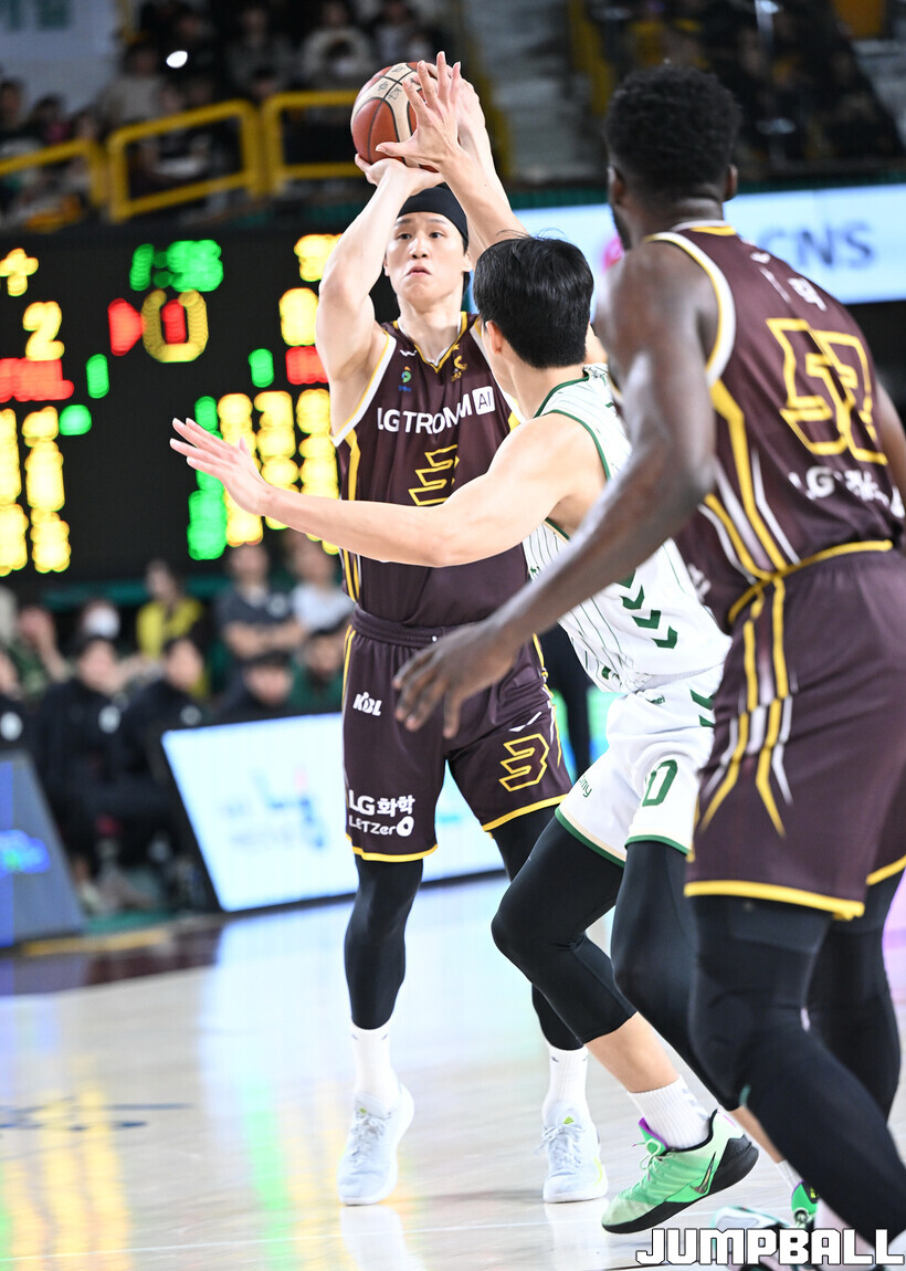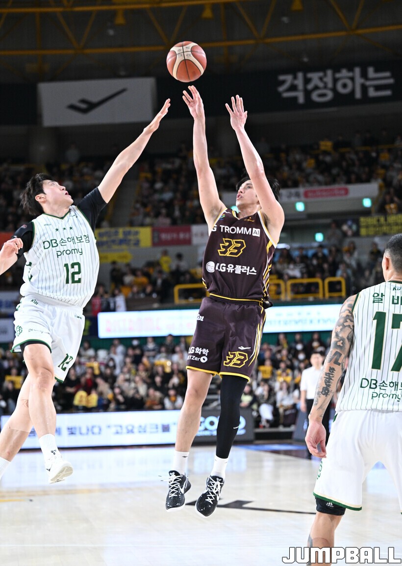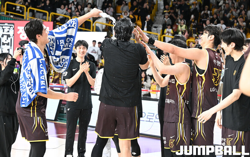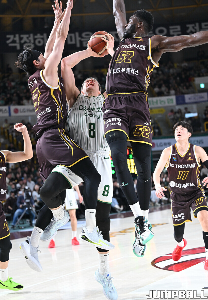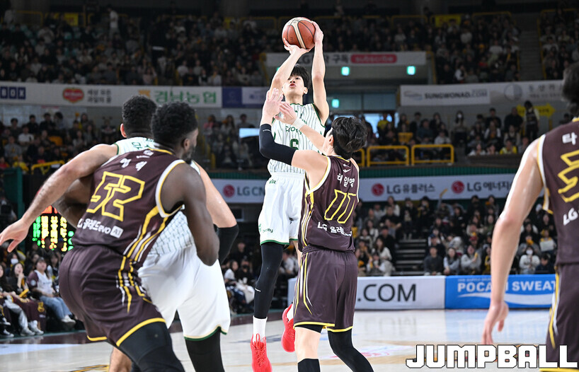 [점프볼=창원/문복주 기자] 창원 LG는 14일 창원체육관에서 열린 2025~2026 LG전자 프로농구 원주 DB와 홈 경기에서 80-58로 이겼다. LG는 마이클 에릭(22점 18리바운드 2어시스트)과 함께 양준석(13점 7리바운드 14어시스트 2스틸), 유기상(14점 3점슛 4개), 칼 타마요(10점 2리바운드 2어시스트)의 활약으로 매진 관중에서 승리를 선물했다.