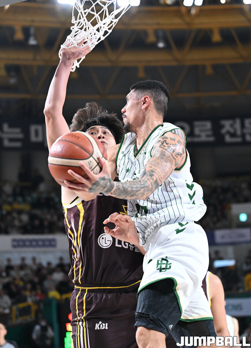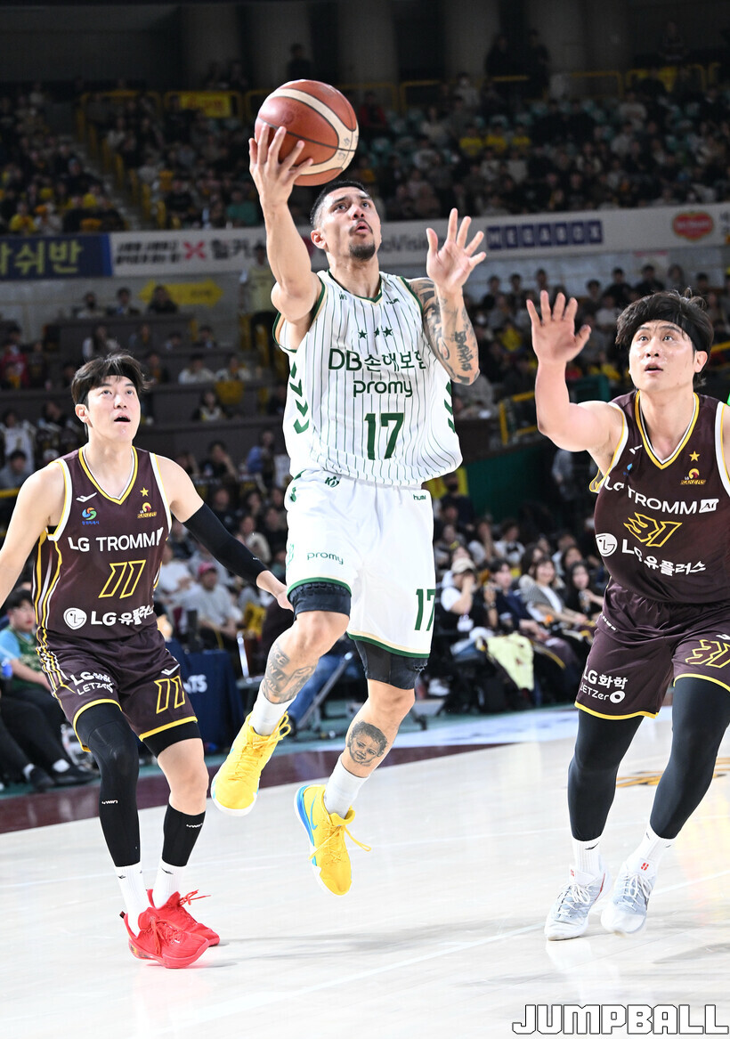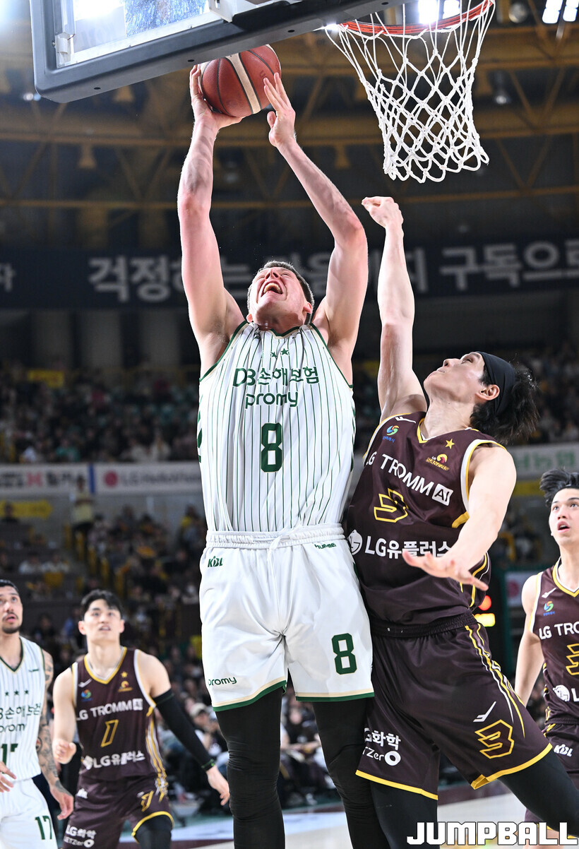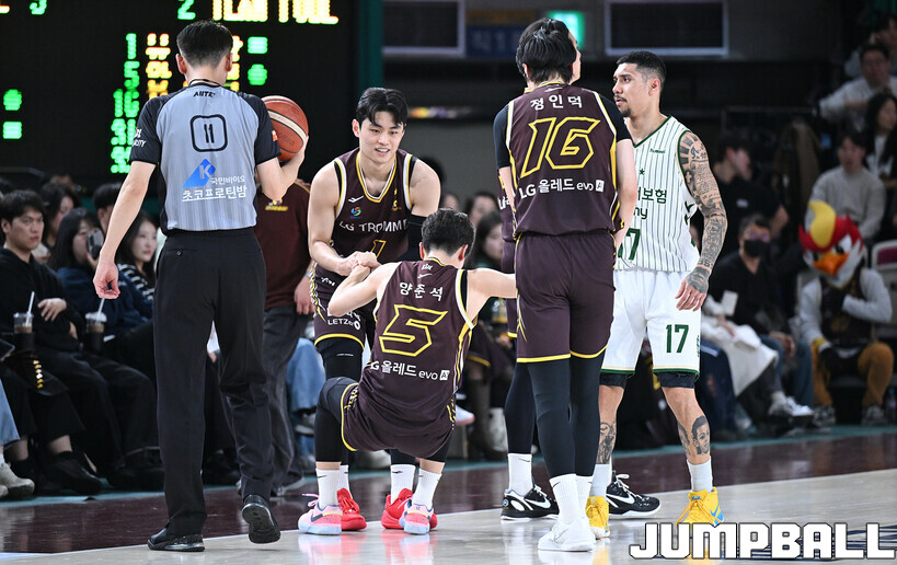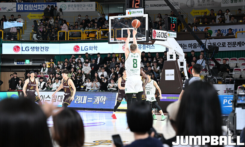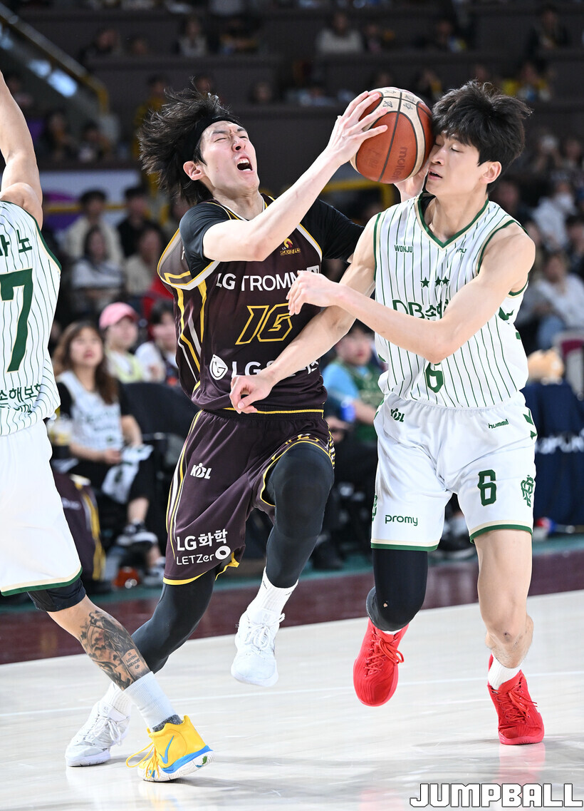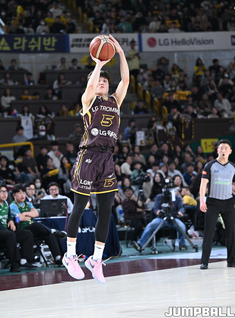 [점프볼=창원/문복주 기자] 창원 LG는 14일 창원체육관에서 열린 2025~2026 LG전자 프로농구 원주 DB와 홈 경기에서 80-58로 이겼다. LG는 마이클 에릭(22점 18리바운드 2어시스트)과 함께 양준석(13점 7리바운드 14어시스트 2스틸), 유기상(14점 3점슛 4개), 칼 타마요(10점 2리바운드 2어시스트)의 활약으로 매진 관중에서 승리를 선물했다.