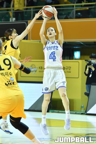 [점프볼=청주/유용우 기자] 11일 청주실내체육관에서 열린 'KB국민은행 Liiv M 2020-2021 여자프로농구' 청주 KB와 용인 삼성생명의 챔피언결정전 3차전, 삼성생명 윤예빈이 경기를 조율하고 있다.