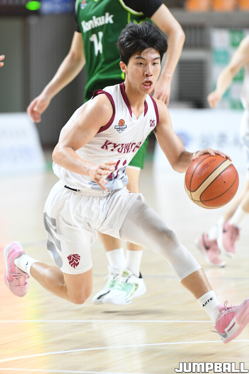 전반전에만 10개의 3점슛을 허용, 35-50으로 3쿼터를 시작했다. 위기가 컸지만, 경희대의 집중력은 대단했다. 손현창을 필두로 모두가 공격에 시선을 쏟으며, 전반전과는 다른 내용을 펼친 것. 그 중심에서 박창희(11점 3점슛 3개)는 3점슛은 물론이며 때에 따라서는, 속공 득점으로 에너지를 드높였다.