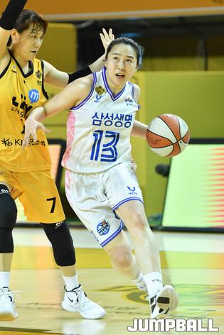 [점프볼=청주/유용우 기자] 11일 청주실내체육관에서 열린 'KB국민은행 Liiv M 2020-2021 여자프로농구' 청주 KB와 용인 삼성생명의 챔피언결정전 3차전, KB 박지수가 패스를 내주고 있다.