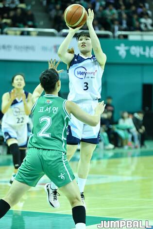 26일 부천체육관에서 열린 우리은행 우리WON 2023-2024 여자프로농구 하나원큐와 신한은행의 경기, 신한은행 구슬이 경기를 리딩하고 있다. [점프볼=부천/유용우 기자]
