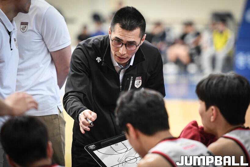 [점프볼=안성/박상혁 기자] 7일 중앙대 안성캠퍼스 체육관에서 열린 2023 KUSF 대학농구 U-리그 중앙대와 고려대의 경기, 고려대 주희정 감독이 선수들에게 작전 지시를 하고 있다.