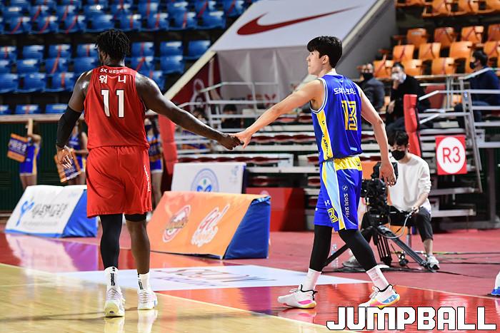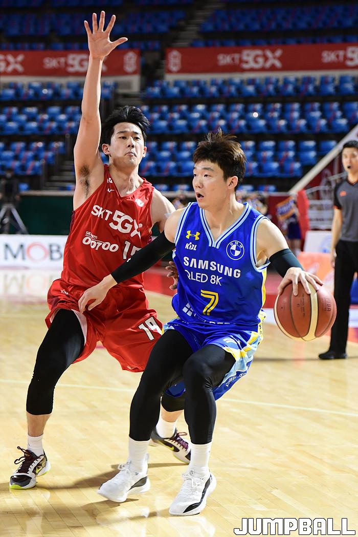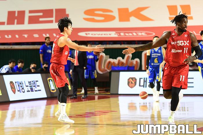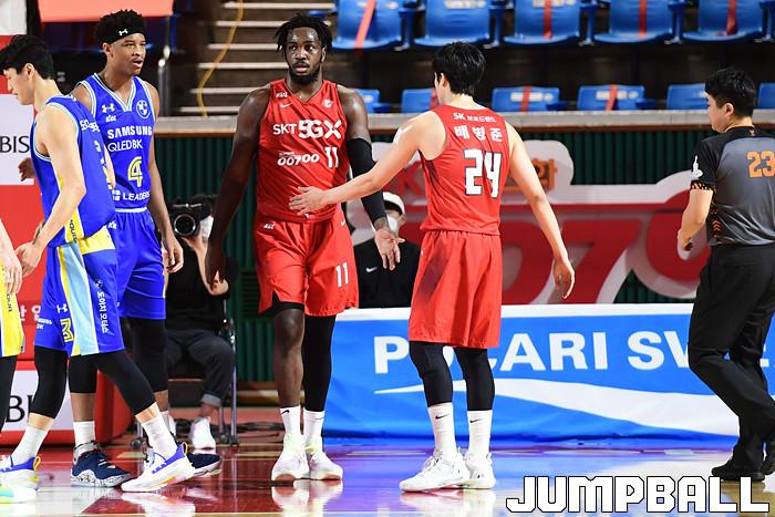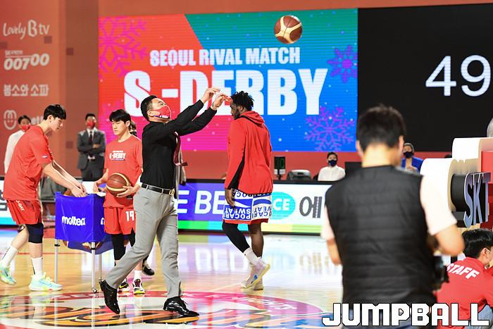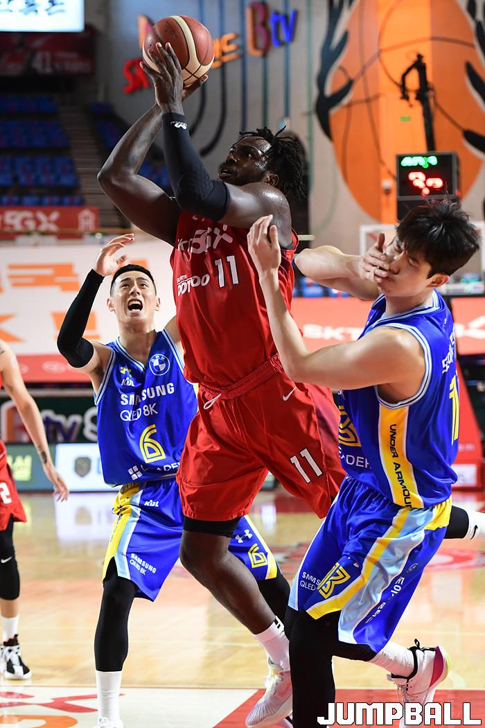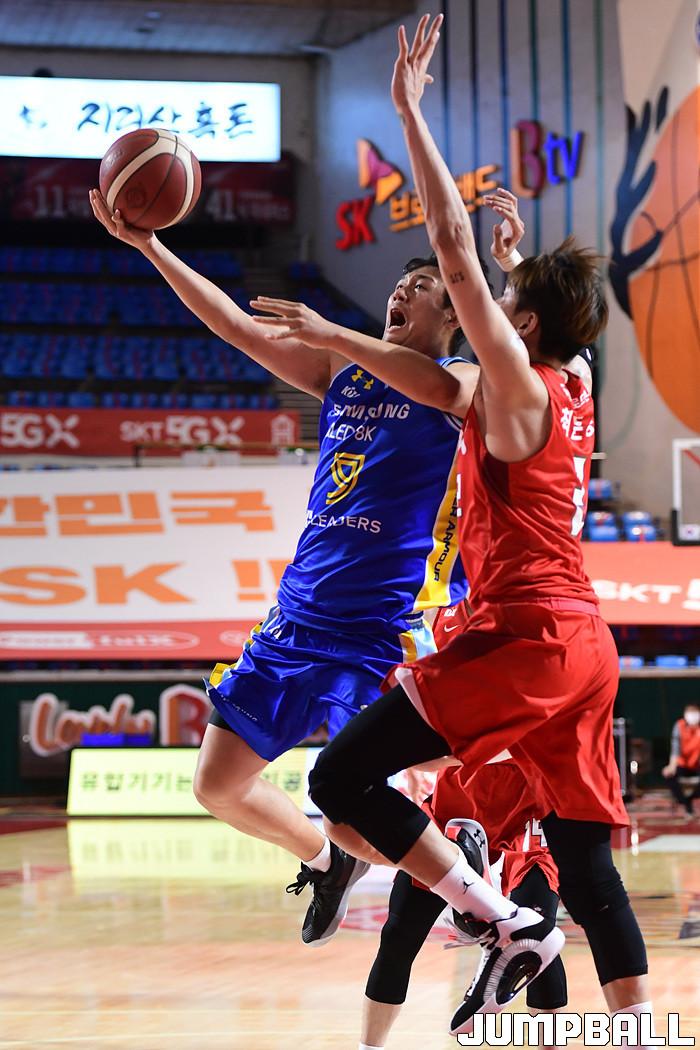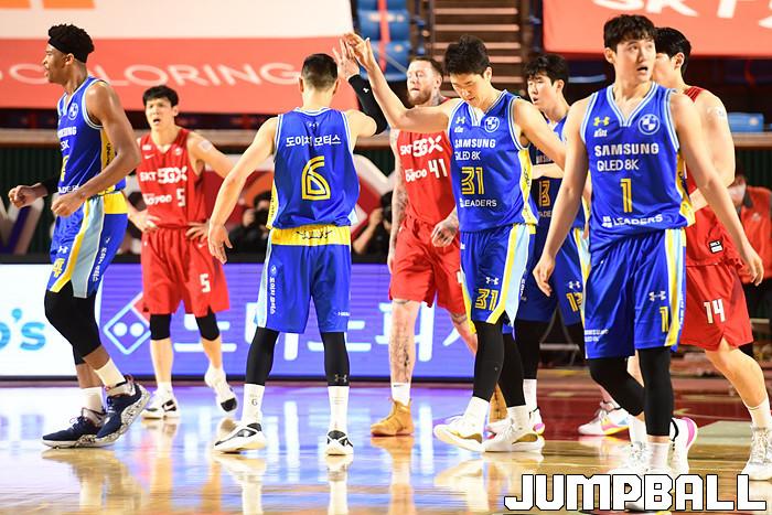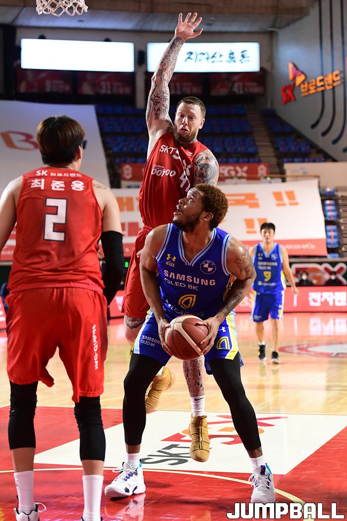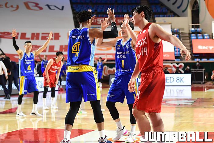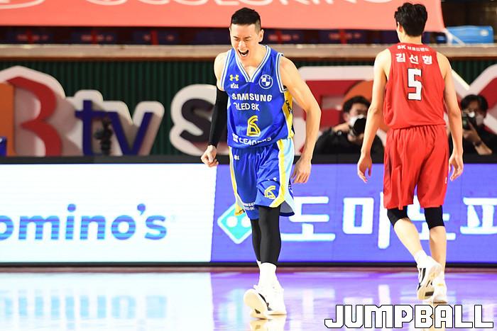 [점프볼=잠실학생/박상혁 기자] 25일 잠실학생체육관에서 열린 2020-2021 현대모비스 프로농구 서울 SK와 서울 삼성의 S-더비 3번째 경기, 삼성이 SK에 89-84로 승리했다. 삼성과 SK 경기 화보.