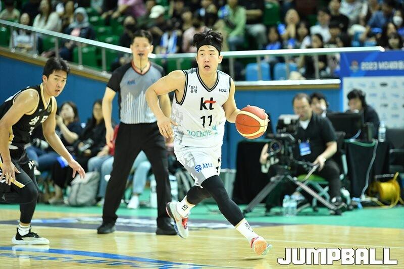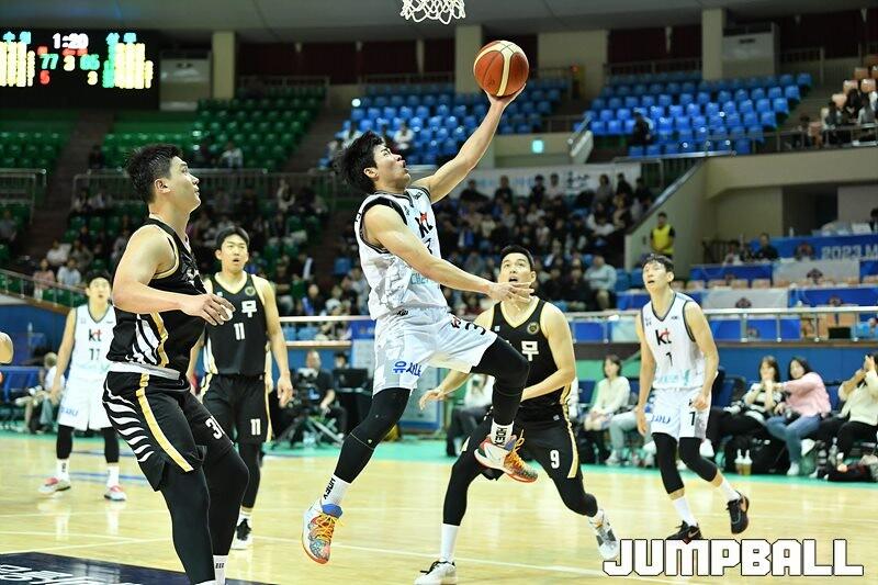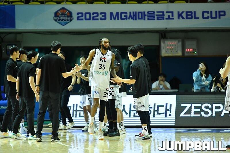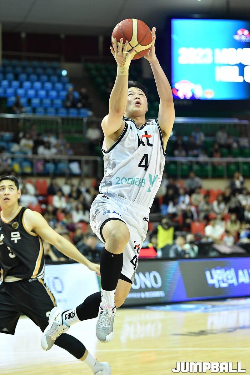 8일 군산월명체육관에서 열린 2023 MG새마을금고 KBL 컵대회 상무와 KT의 예선 경기, KT가 102-84로 승리했다. [점프볼=군산/유용우 기자]