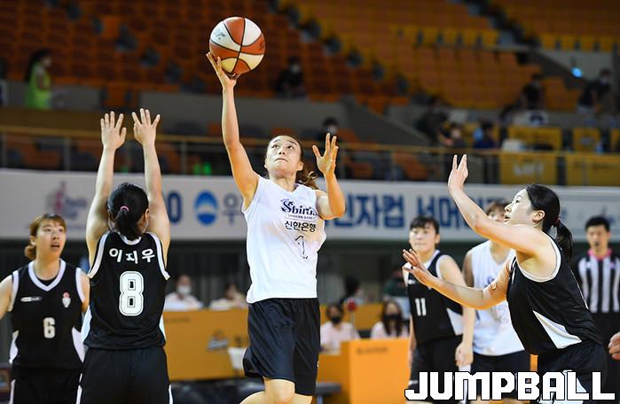 [점프볼=청주/문복주 기자] 17일 청주체육관에서 열린 '2020 우리은행 박신자컵 서머리그' 대학선발과 신한은행의 경기, 신한은행 황미우가 골밑을 날렵하게 파고들어 슛을 시도하고 있다.
