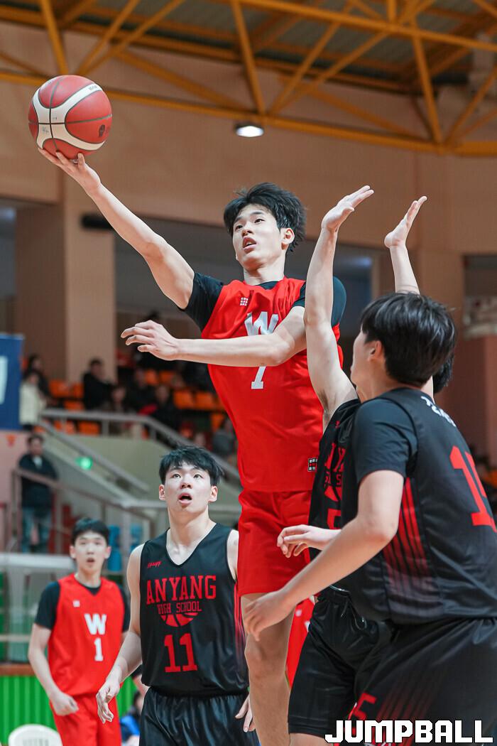 휘문고는 8일 전라남도 해남군 우슬체육관에서 열린 '제61회 춘계 전국남녀중고농구연맹전 해남대회' 2일차 D조 예선 안양고와 경기에서 86-84로 승리했다.