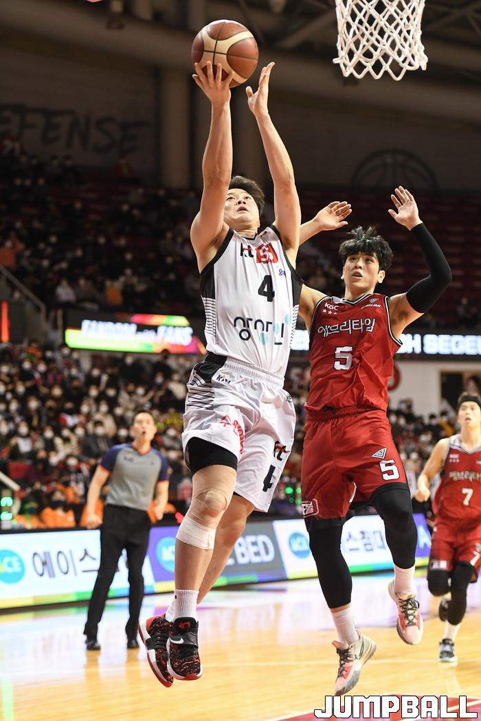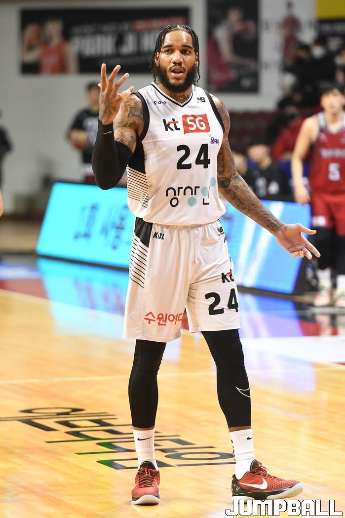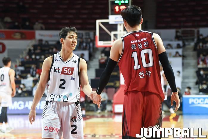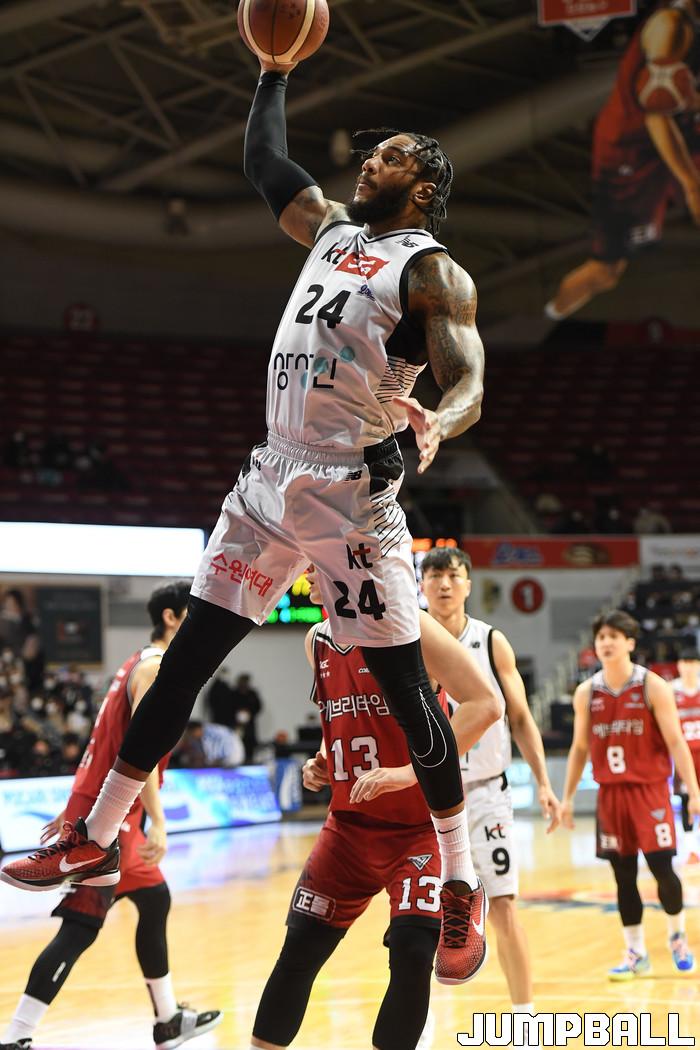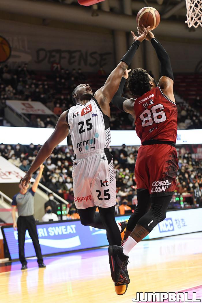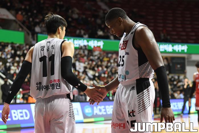 29일 안양실내체육관에서 열린 2021-2022 KGC인삼공사 정관장 프로농구 안양 KGC인삼공사와 수원 KT의 경기, KT가 KGC에 77-67로 승리했다. KT에서는 캐디 라렌이 23점 16리바운드, 정성우가 16점 2어시스트, 양홍석이 15점 4리바운드 4어시스트를 기록했다. KGC와 KT 경기 화보.