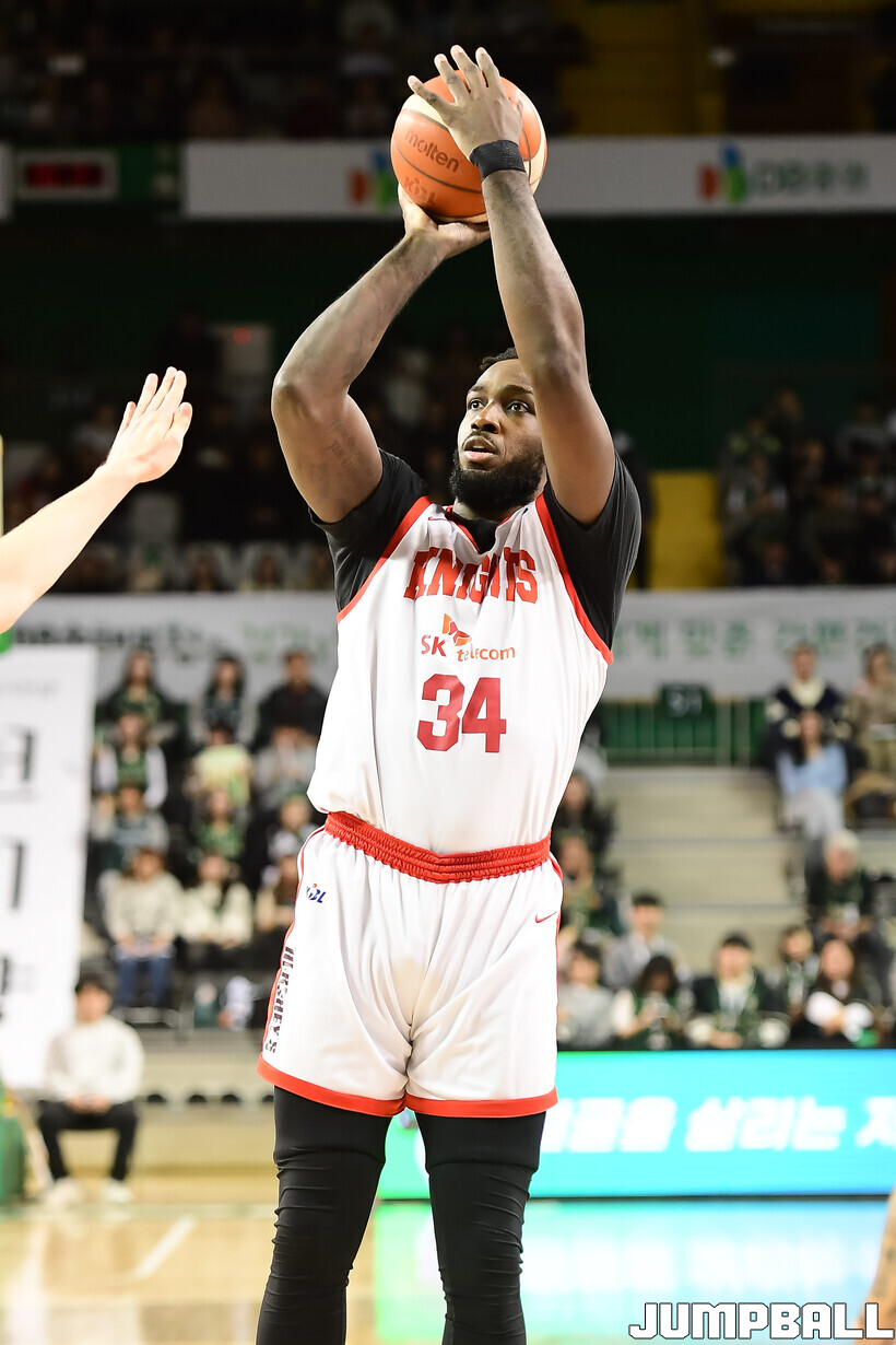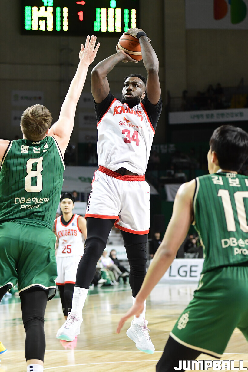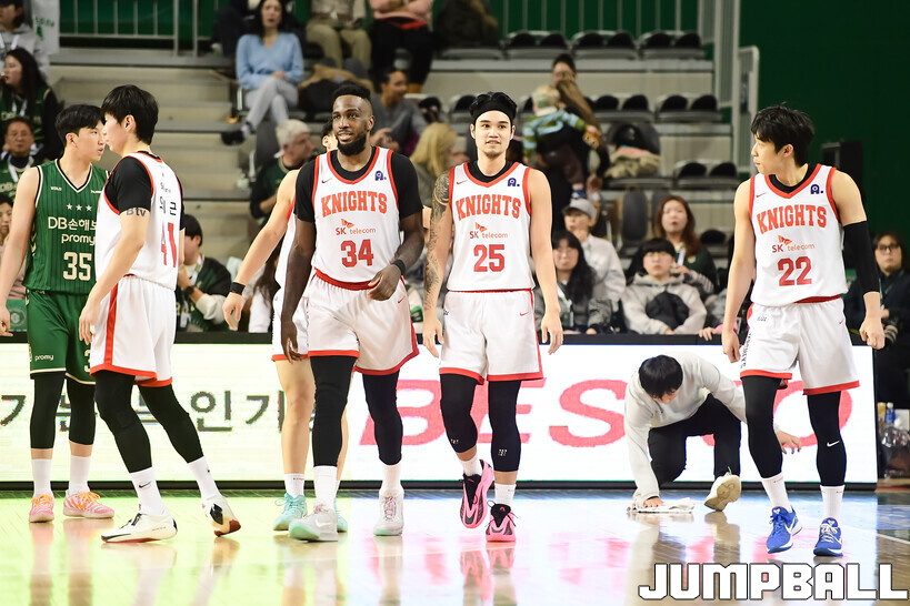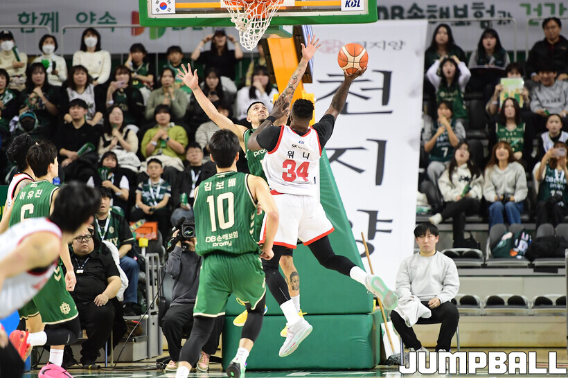 [점프볼=원주/박상혁 기자] 8일 원주 DB 프로미 아레나에서 열린 2025-2026 LG전자 프로농구 원주 DB와 서울 SK의 경기, SK가 DB에 66-65로 승리했다.
