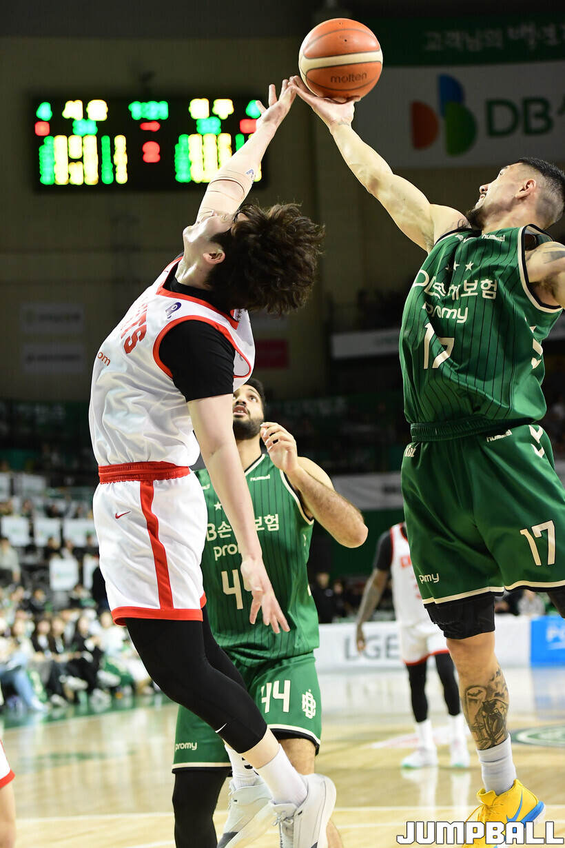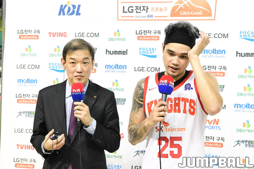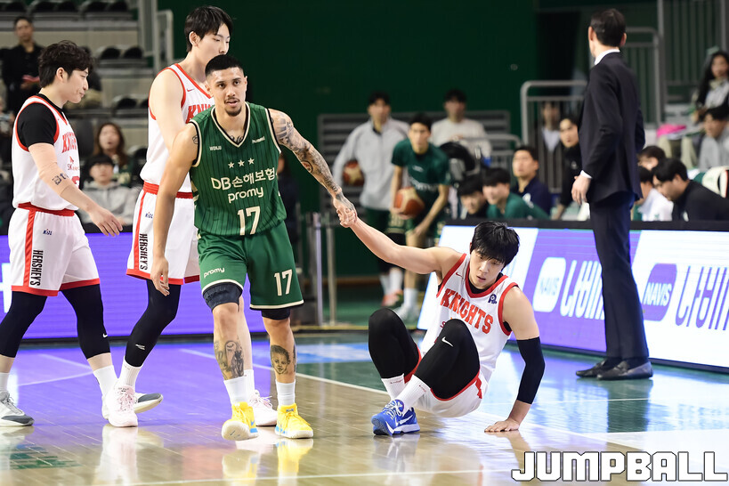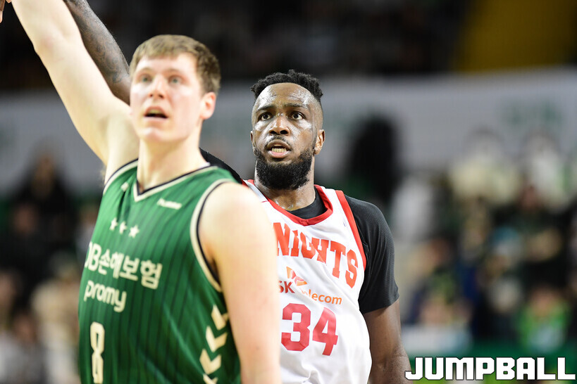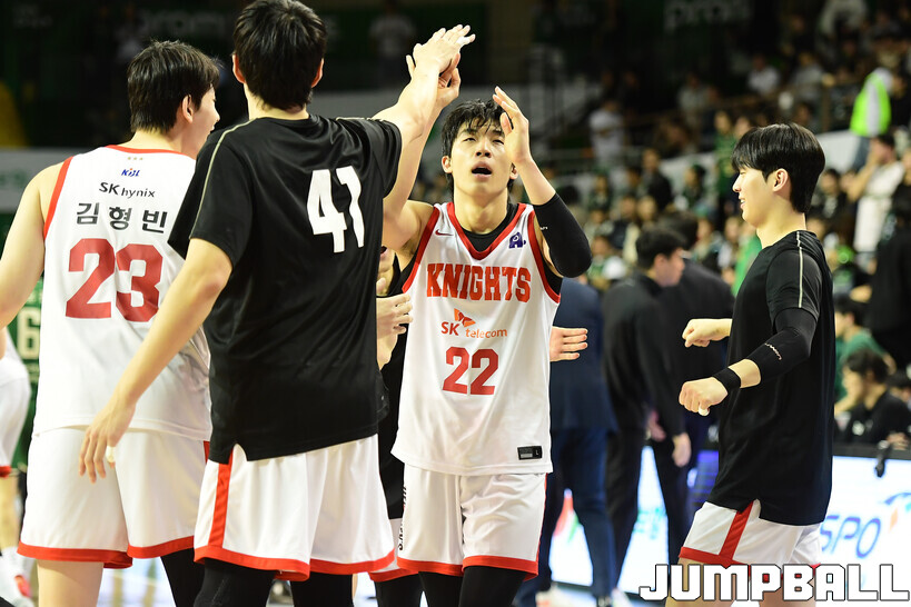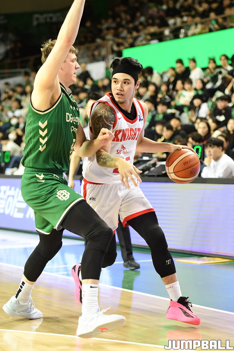[점프볼=원주/박상혁 기자] 8일 원주 DB 프로미 아레나에서 열린 2025-2026 LG전자 프로농구 원주 DB와 서울 SK의 경기, SK가 DB에 66-65로 승리했다.