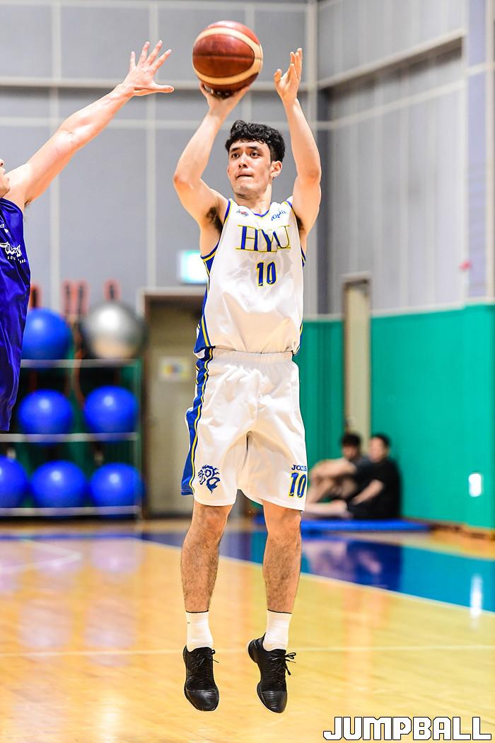 [점프볼=용인/박상혁 기자] 28일 용인에 위치한 삼성휴먼센터에서 열린 서울 삼성과 한양대의 연습경기, 한양대 이근휘가 3점슛을 시도하고 있다.