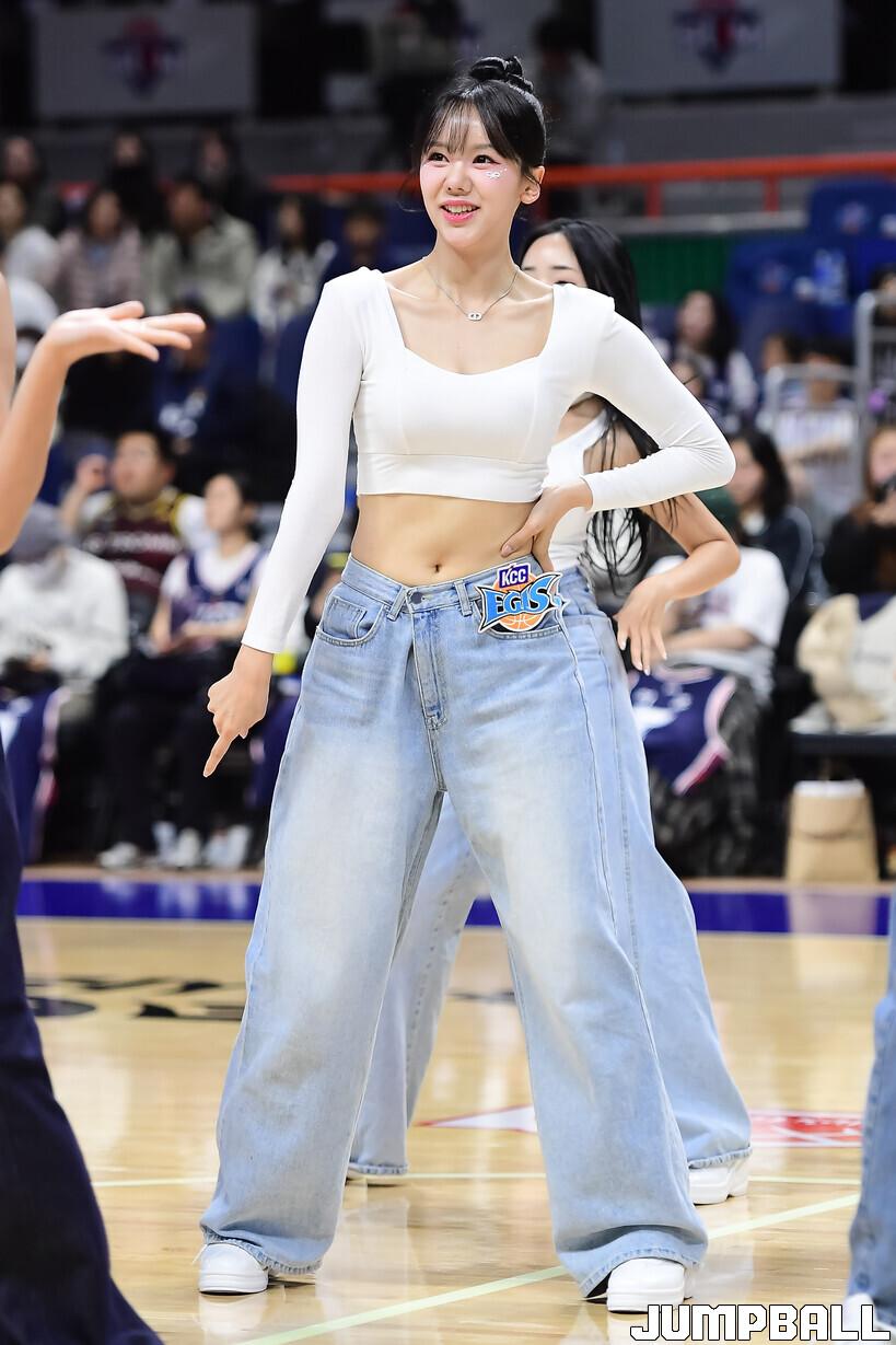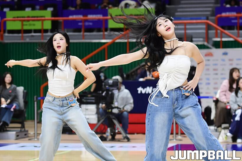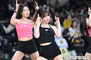 [점프볼=부산/박상혁 기자] 7일 부산사직체육관에서 열린 2025-2026 LG전자 프로농구 부산 KCC와 서울 SK의 경기, KCC 치어리더가 열정적인 응원을 선보였다.