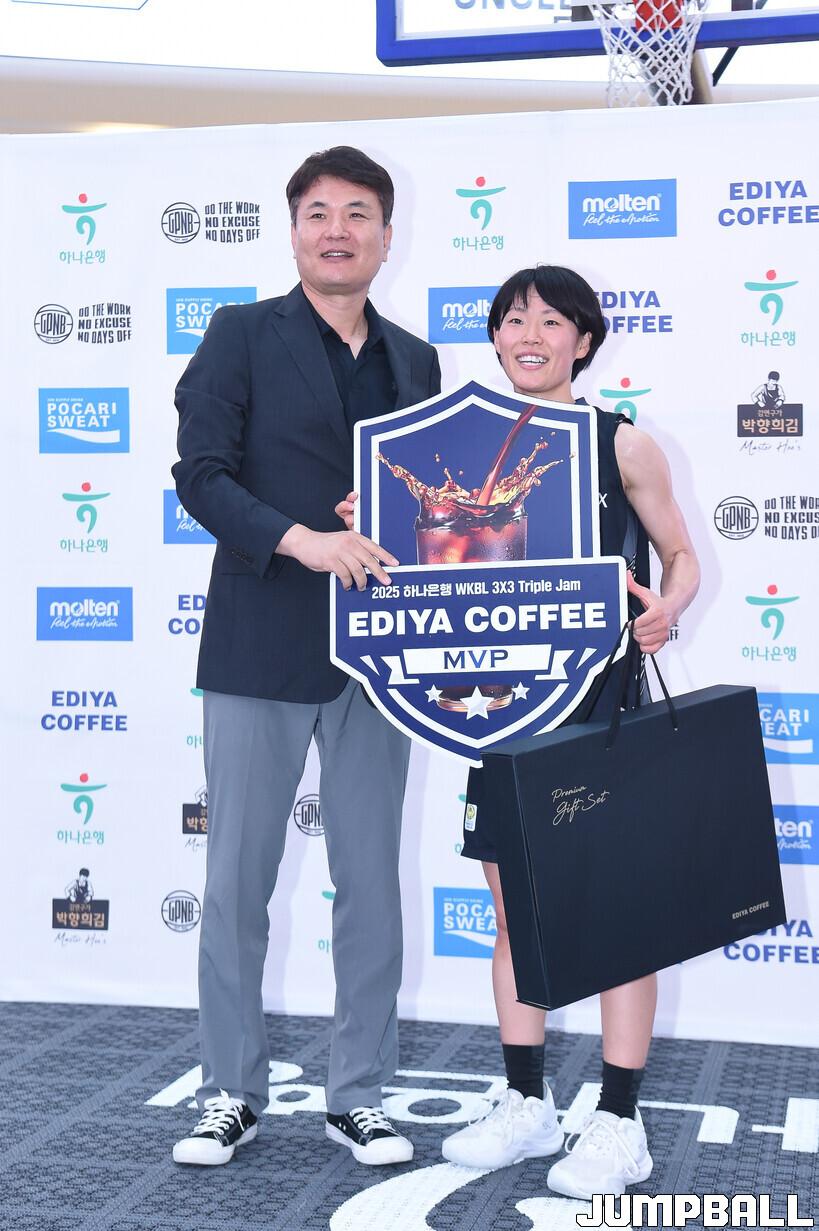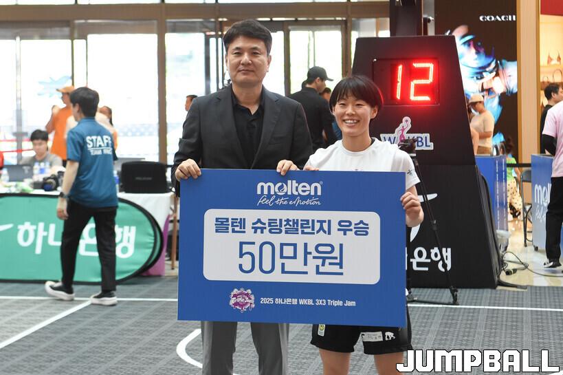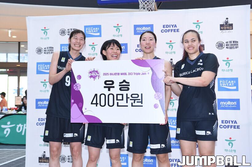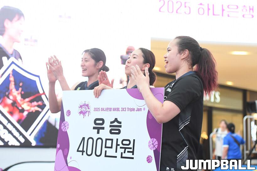 [점프볼=고양/박상혁 기자] 22일 스타필드 고양에서 열린 '2025 하나은행 WKBL 3x3 트리플잼' 2차 대회 2일차 경기, 결승에서 모리스 라크로와가 엉클 드류에 17-14로 승리하며 대회 우승을 차지하며 대회가 마무리 되었다.